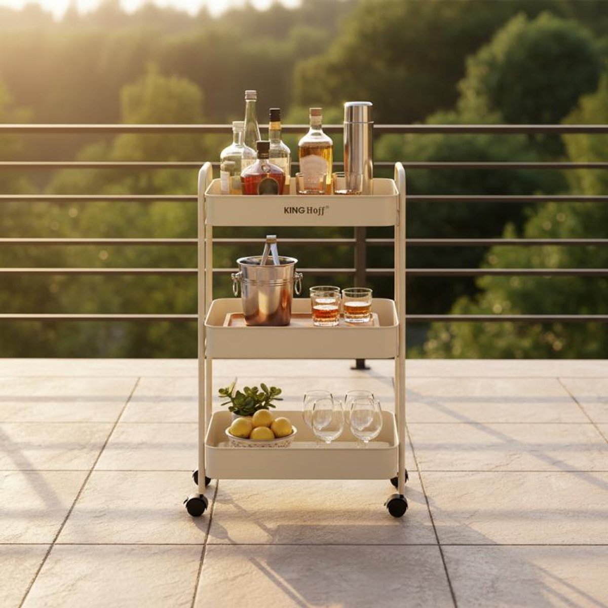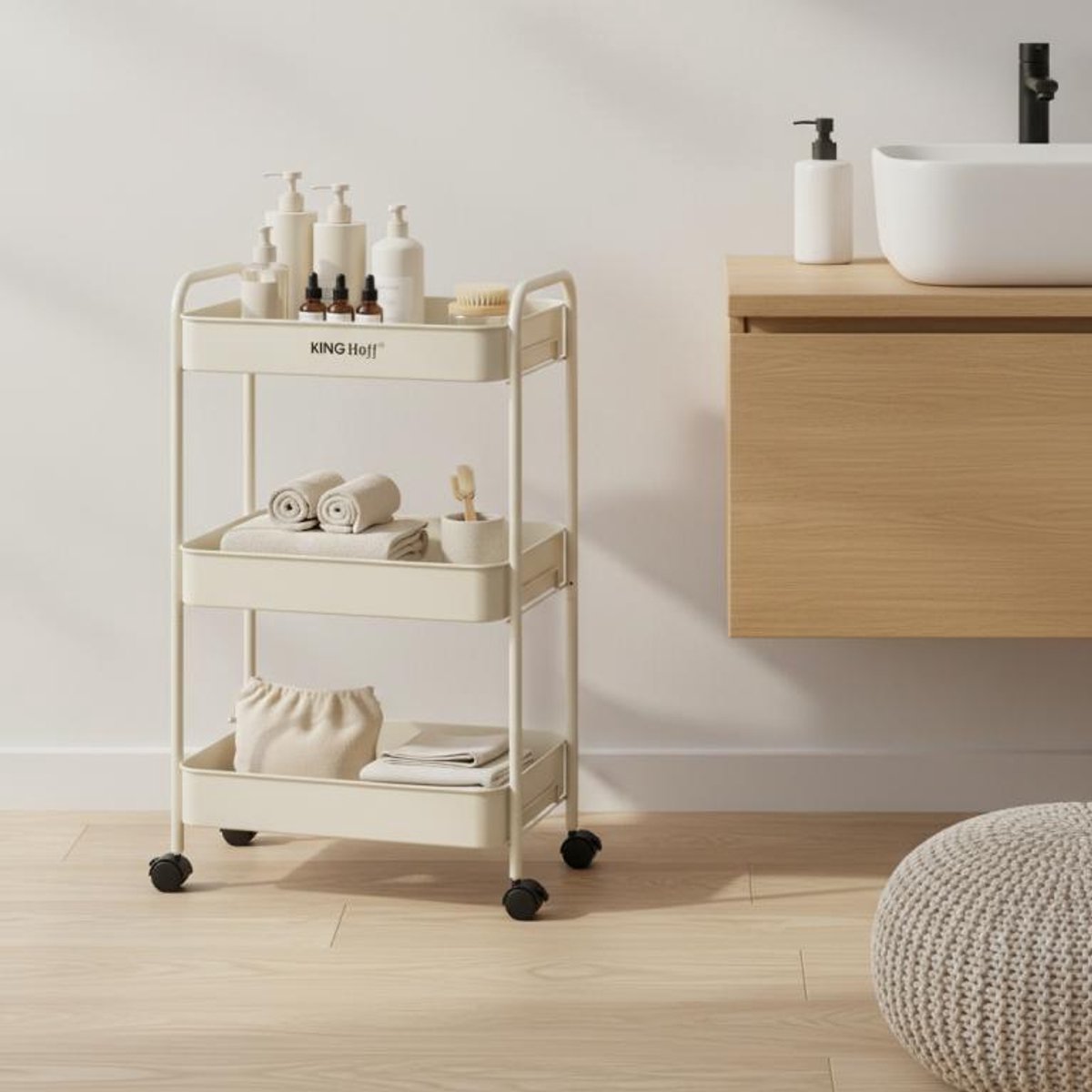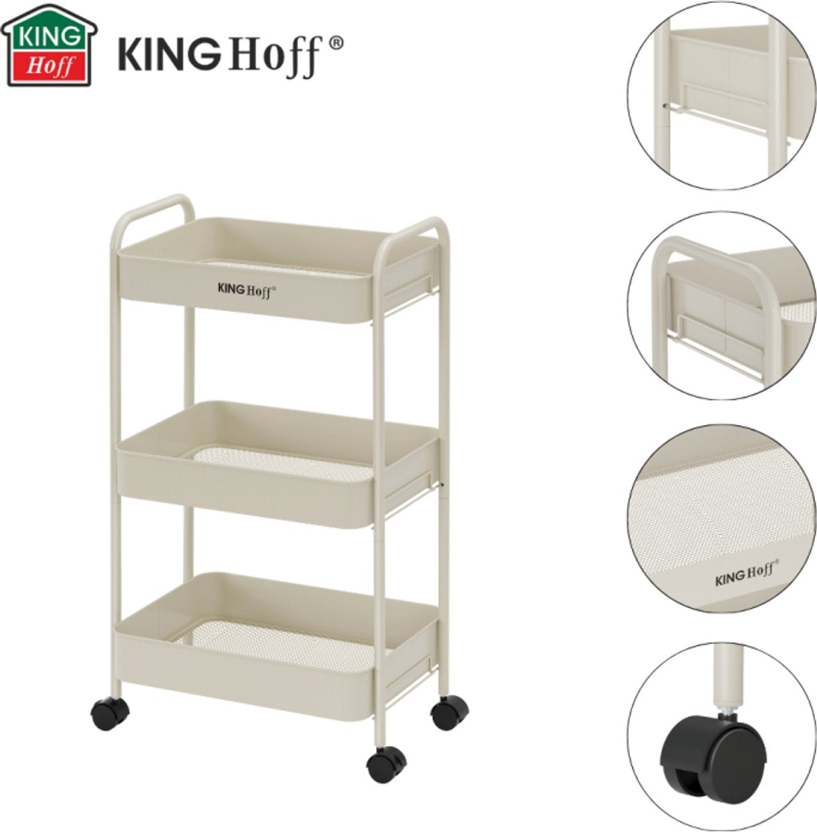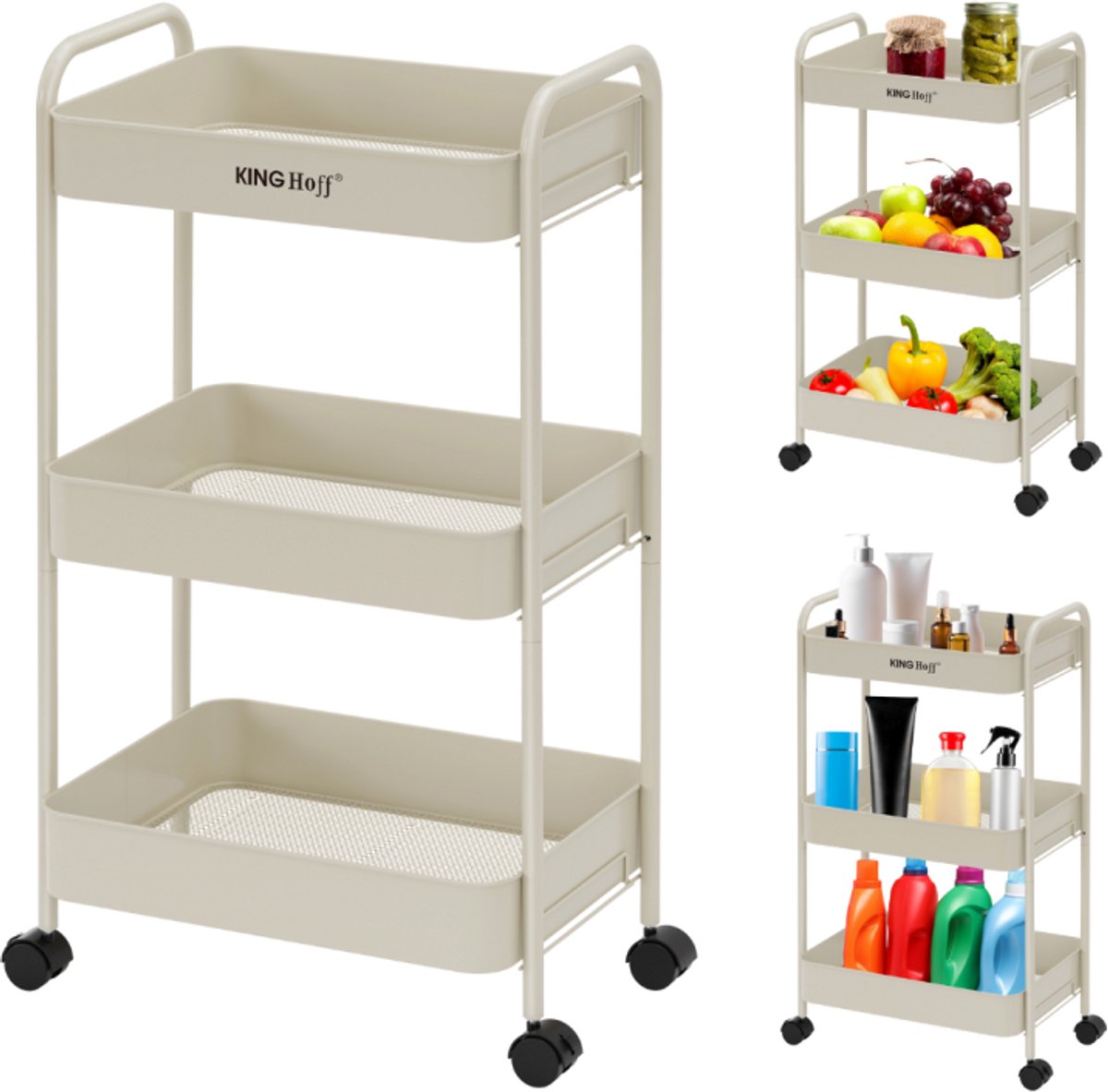 Kinghoff KH-1943 Mobiele 3-delige Stellingkar - Stijlvolle Opbergoplossing in Beige
