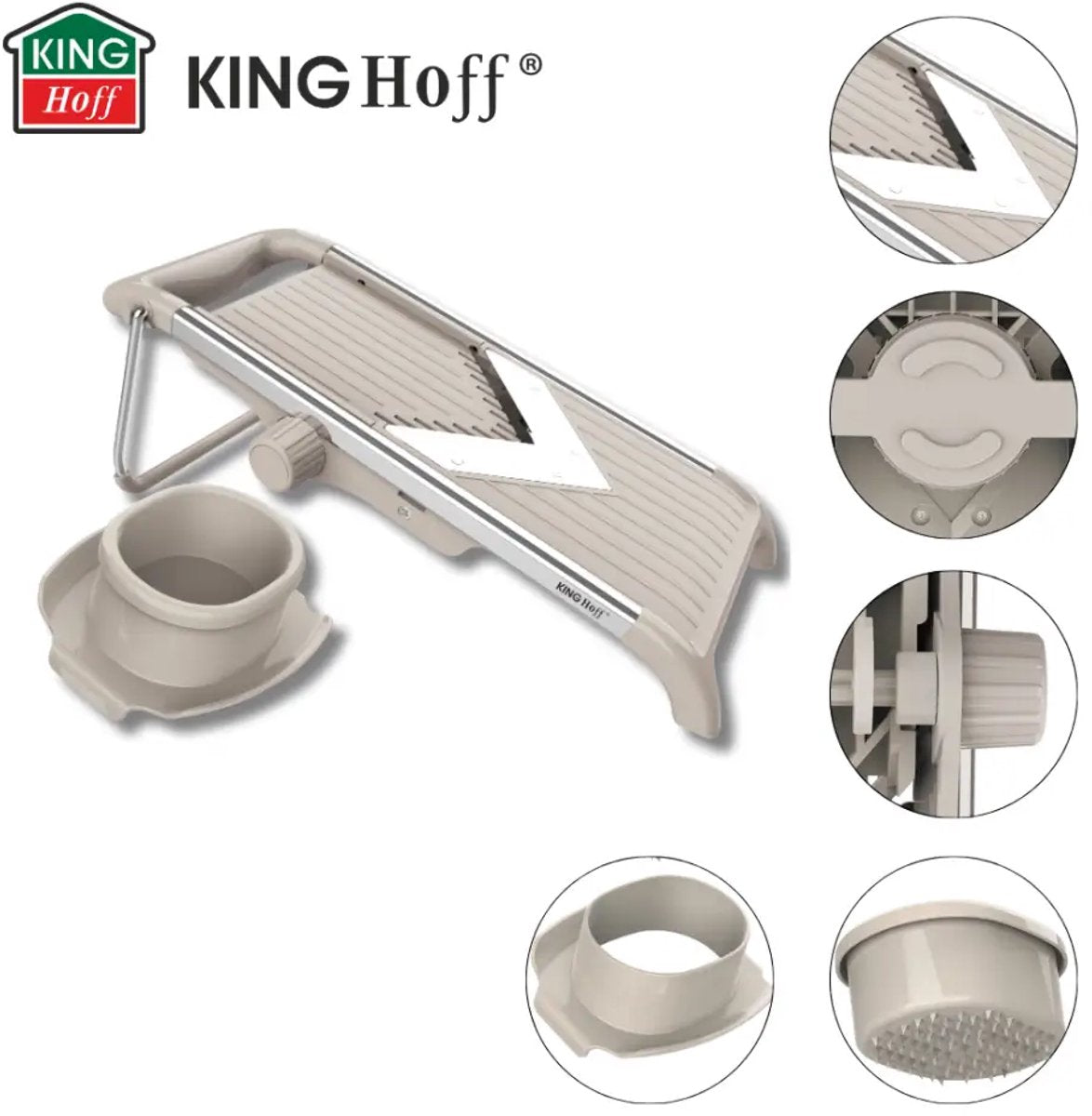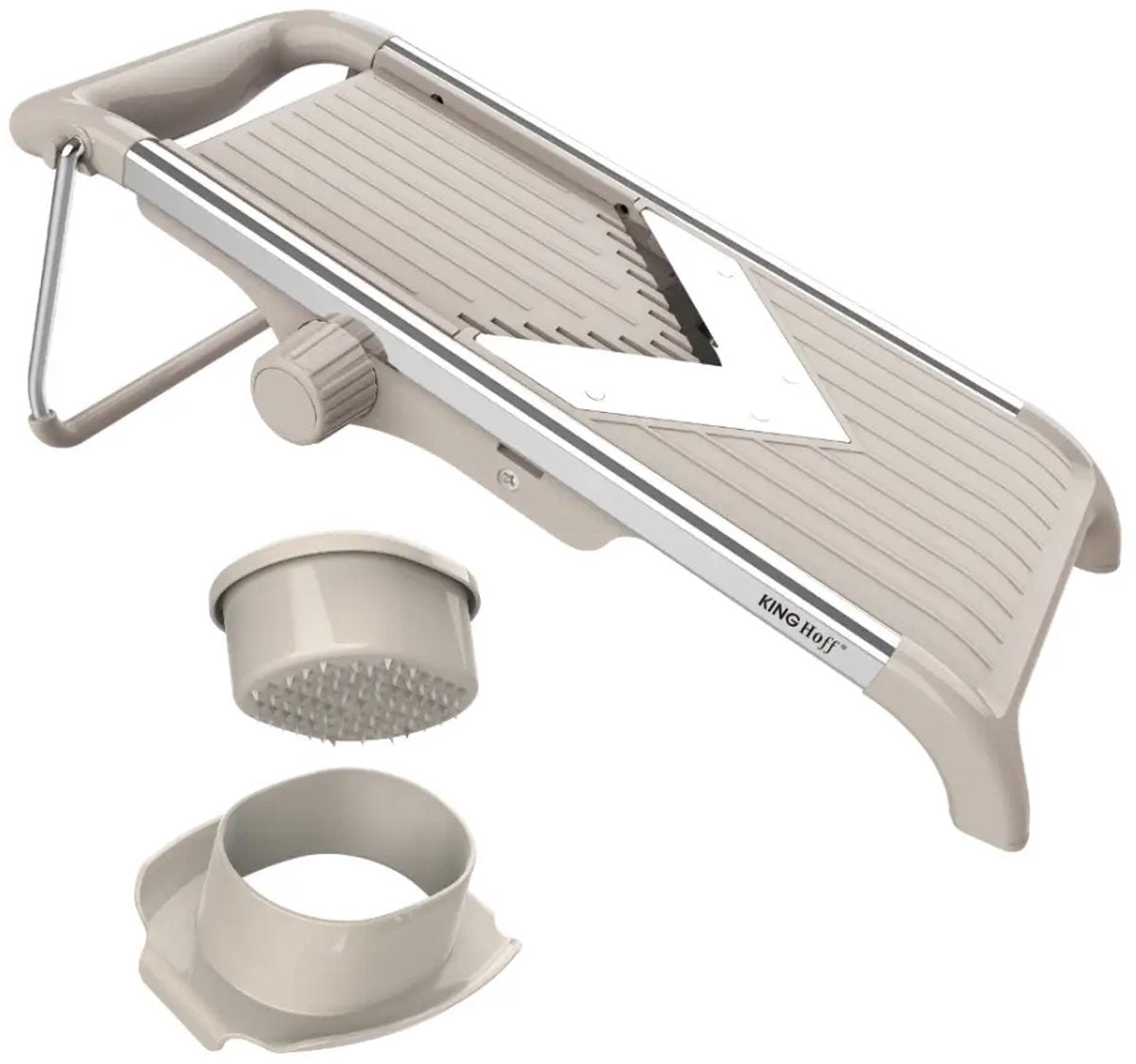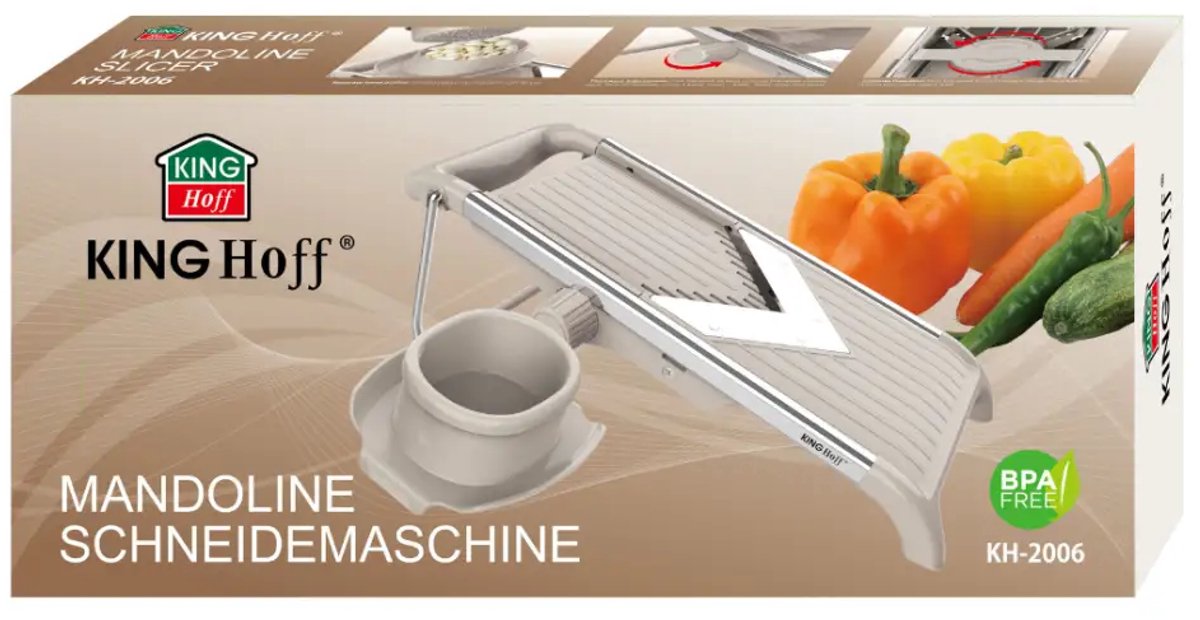 De KINGHOFF KH-2006 is een krachtige en veelzijdige mandoline waarmee je binnen enkele seconden perfecte plakjes, reepjes en julienne maakt. De scherp geslepen V-vormige roestvrijstalen messen snijden moeiteloos door harde én zachte groenten zonder te scheuren of pletten. Ideaal voor salades, chips, roerbakgerechten, coleslaw of prachtig gelijkmatige groentesnacks.