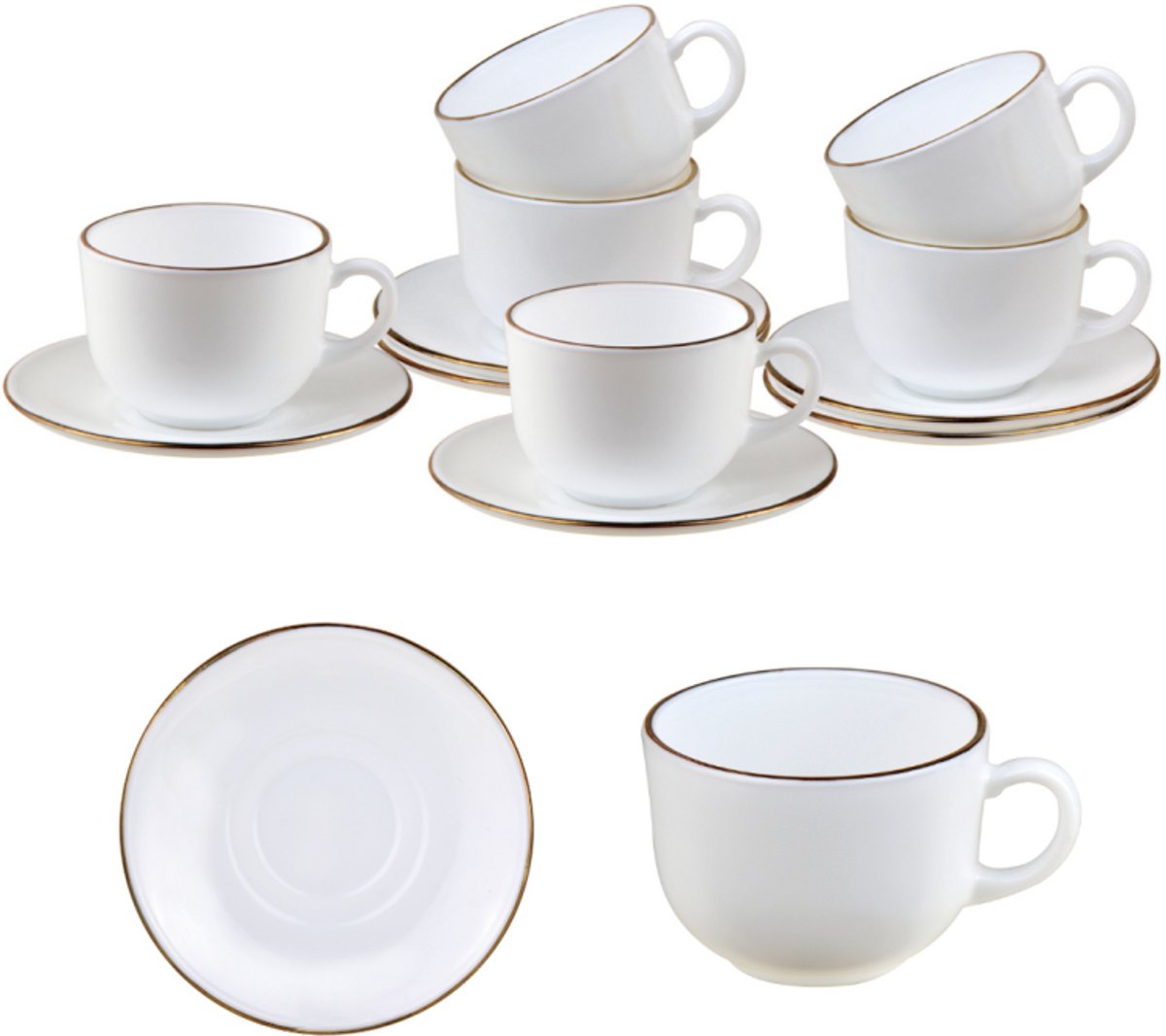 Deze stijlvolle kop en schotel set van KingHoff is een uitstekende keuze voor koffie- en theeliefhebbers die waarde hechten aan elegantie bij het dagelijkse ritueel van hun favoriete drankje. Het witte opaalglas gecombineerd met de delicate gouden versiering creëert een subtiel maar verfijnd effect dat er zowel dagelijks mooi uitziet als tijdens een feestelijke ontvangst van gasten.
