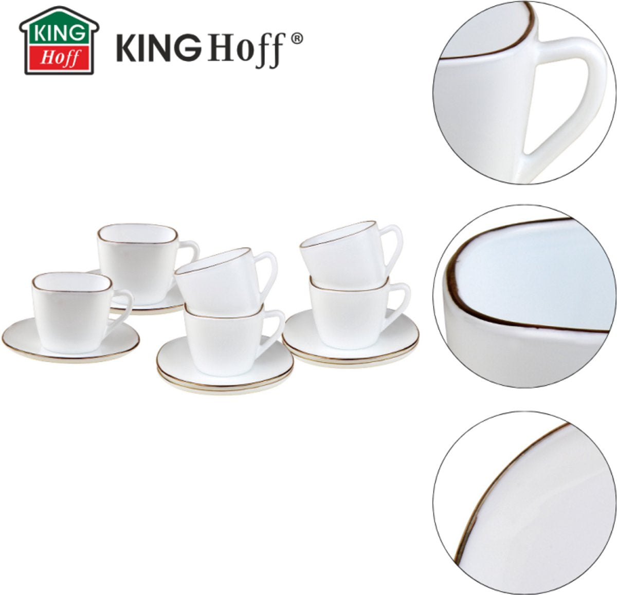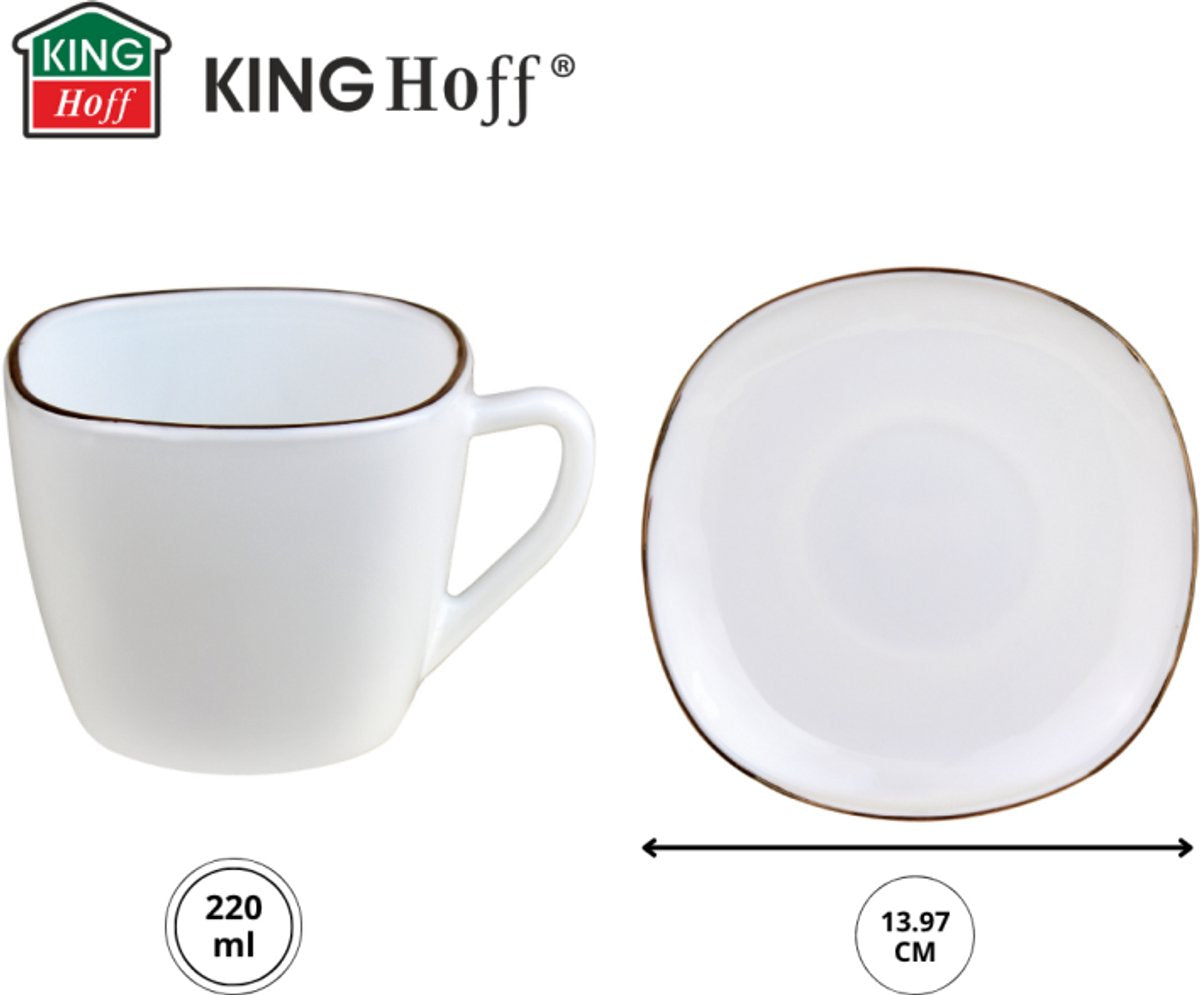 Deze vierkante kop en schotel set KH-1930 van KingHoff is perfect voor wie houdt van origineel design en functionaliteit. De opvallende vierkante vorm met afgeronde randen, in combinatie met de witte kleur en delicate gouden versiering, geeft de set een uiterst stijlvolle uitstraling. Of u nu geniet van een dagelijks ontbijt of koffie serveert aan gasten, deze set maakt elke gelegenheid bijzonder.