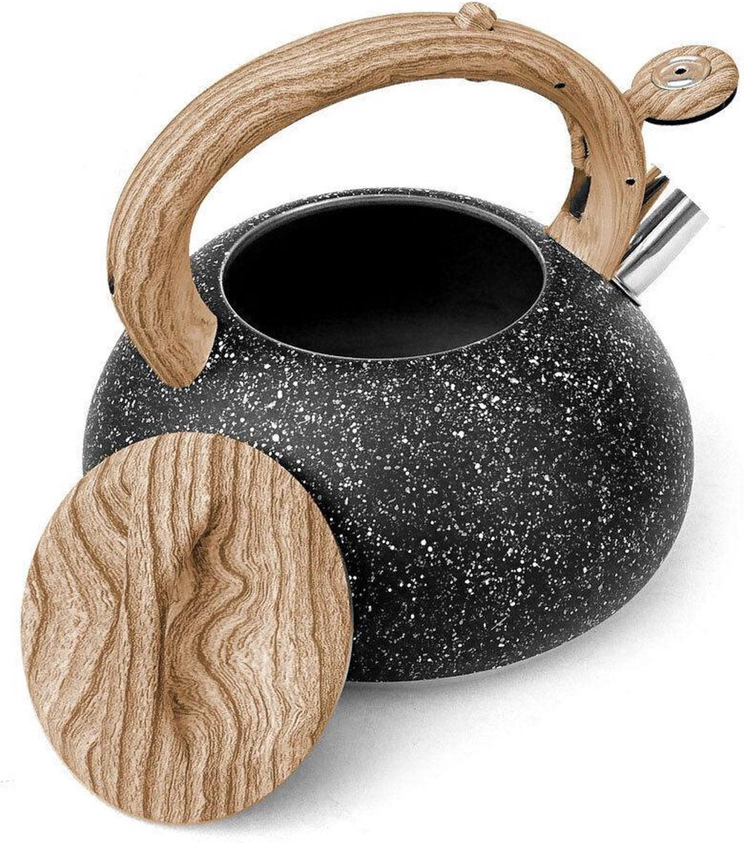 De ketel is gemaakt van roestvrij staal bedekt met een marmeren coating. Zachte handgreep bedekt met een laag hout-imiterende siliconen.... Lees meer