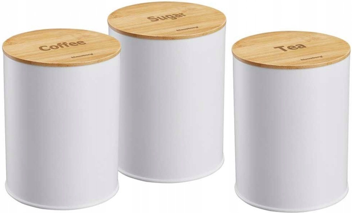 Set van 3 containers met bamboe deksels voor het opbergen van koffie, thee en suiker Zwart gelakte roestvrijstalen behuizing. De... Lees meer