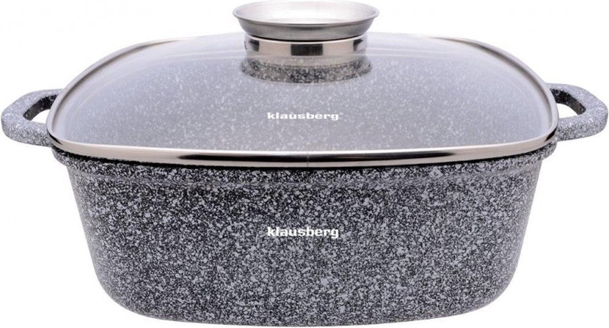 Dankzij de marmeren laag van deze pan. Bakt het eten niet aan en is deze braadpan gemakkelijk schoon te maken. De braadpan heeft een vierkante vorm met een hoge rand. Met de stijlvolle glazen deksel voorzien van aroma dop kunnen er sappen worden toegevoegd tijdens het koken. Hierdoor kan er een extra smaakbeleving bijkomen. De braadpan is geschikt voor alle soorten warmtebronnen waaronder inductie. Klausberg Braadpan voorzien van marmer coating.