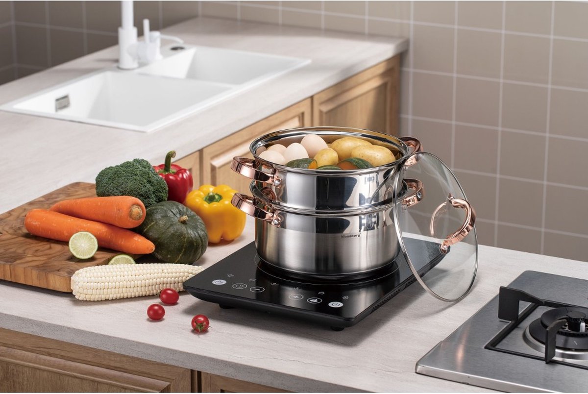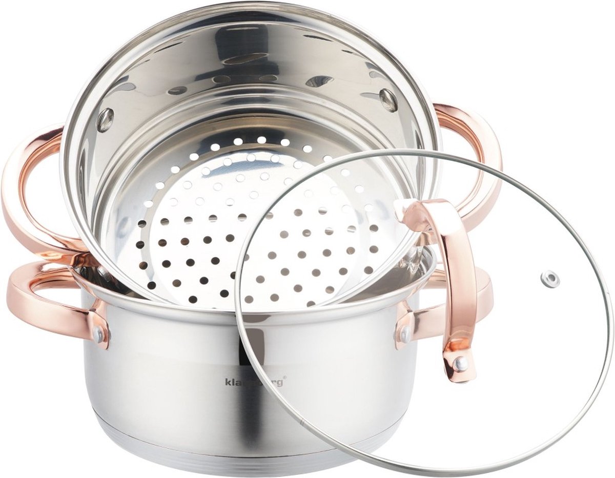De Klausberg stoompan maakt koken tot een gemak. Door de meer-laagse rvs bodem van de pan zorgt dit voor een optimale warmte verspreiding. Door de afgeronde bodem is deze stoompan set gemakkelijk schoon te maken. Specificaties