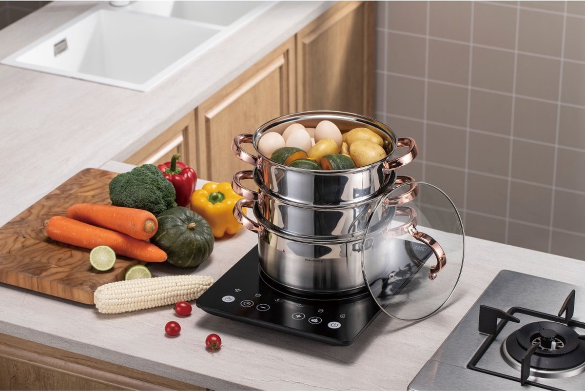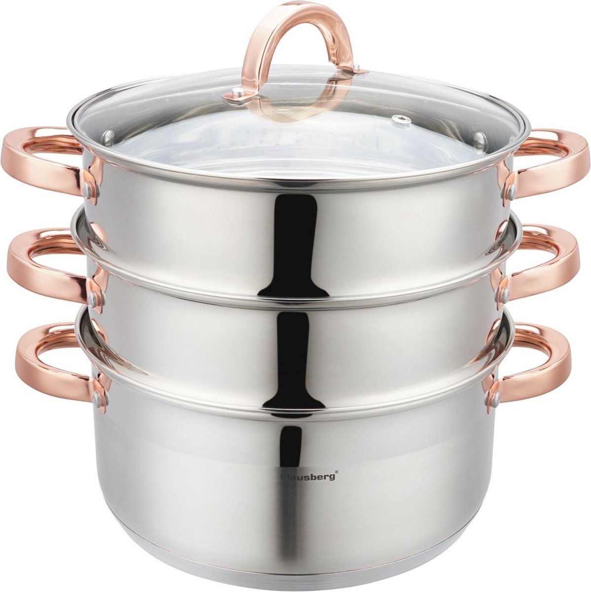 De Klausberg stoompan maakt koken tot een gemak. Door de meer-laagse rvs bodem van de pan zorgt dit voor een optimale warmte verspreiding. Door de afgeronde bodem is deze stoompan set gemakkelijk schoon te maken. Specificaties