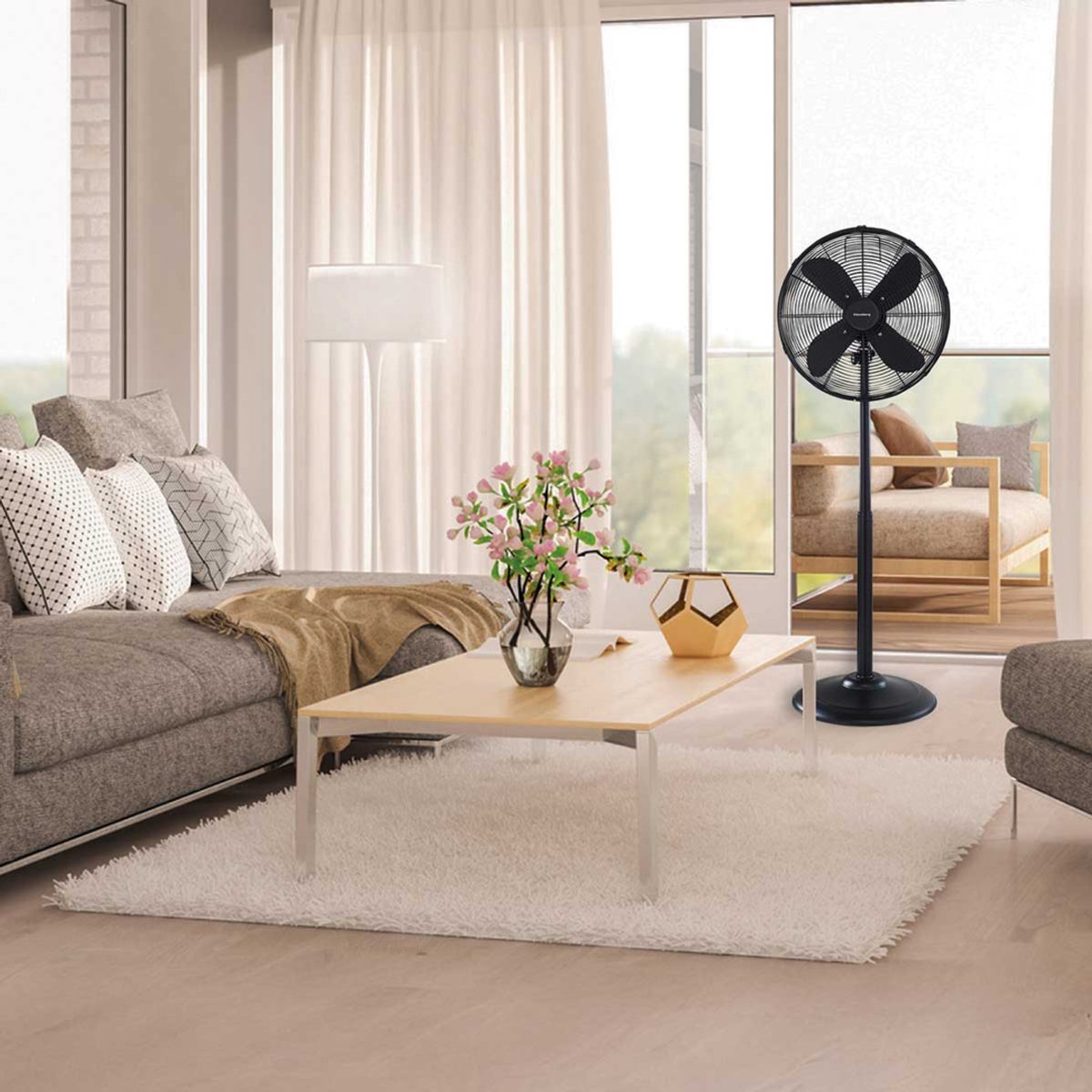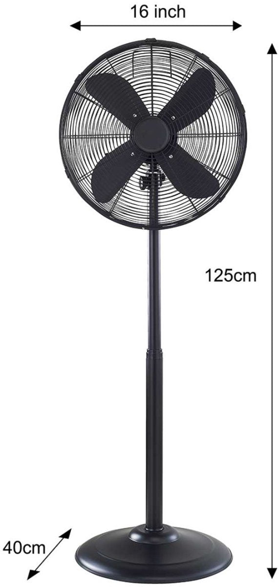 Eenvoudig te installeren staande ventilator die op warme dagen voor een aangenaam verkoelend gevoel zorgt. Het apparaat beschikt over een drietrapsregeling van de luchtstroomsnelheid. Het is uitgerust met een automatische oscillatiefunctie, waardoor het zijwaarts kan draaien. Hierdoor wordt het bereik van het apparaat vergroot. De stevige basis voorkomt dat het apparaat omvalt en dankzij de telescopische buis is de hoogte verstelbaar. Zo kunt u zelf de juiste luchtstroom instellen. De ventilator is gemaakt van zwart metaal, wat hem een elegante, moderne vorm geeft.