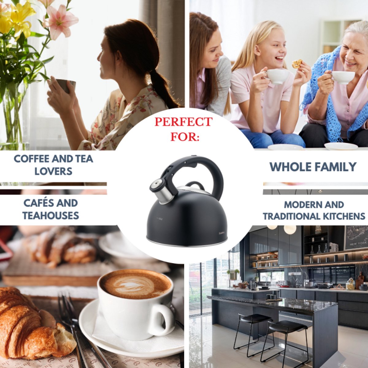 De elegante waterkoker met fluitje in matzwart is de perfecte combinatie van modern design en functionaliteit. Gemaakt van roestvrij staal, past hij perfect in zowel stijlvolle keukens als traditionele interieurs. Het subtiele design is een echte blikvanger, terwijl de solide constructie zorgt voor jarenlange duurzaamheid.