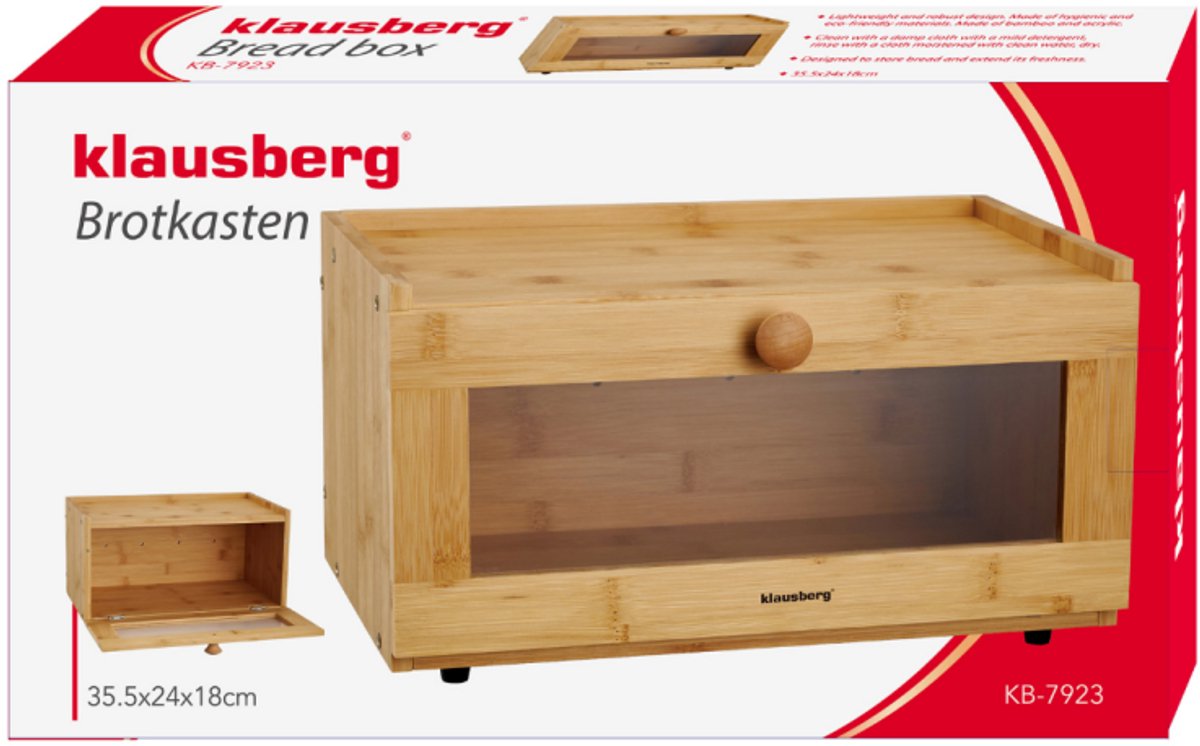 De KLAUSBERG KB-7923 Bamboe Brooddoos biedt een praktische en stijlvolle oplossing voor het bewaren van brood. Vervaardigd uit duurzaam bamboe en transparant acryl, combineert deze brooddoos natuurlijke materialen met een modern design. Het transparante front stelt u in staat om eenvoudig de inhoud te controleren, terwijl het luchtdichte design de versheid van uw bakselwaren verlengt.