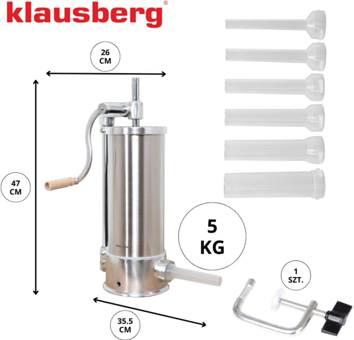 Met de meegeleverde silicone plunger en zes verschillende vullers bent u perfect uitgerust voor ieder worstrecept. De Klausberg KB-7927 combineert professionele prestaties met gebruiksgemak, en is de ultieme keuze voor iedereen die serieus met worst maken aan de slag wil.