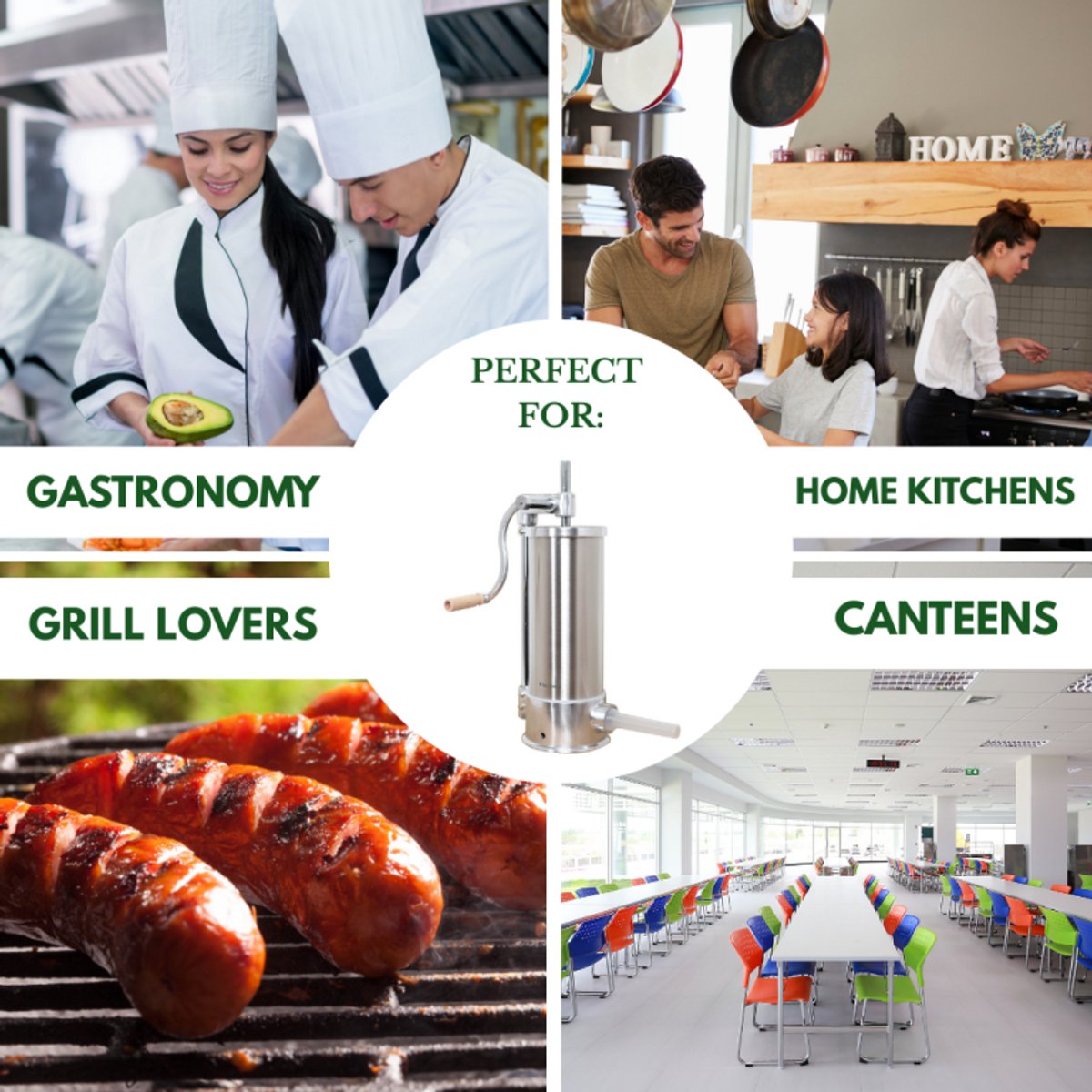 Met een ruime capaciteit van 5 kg is dit model perfect voor zowel thuisgebruik als voor het bereiden van grotere hoeveelheden. Het verticale ontwerp zorgt voor een constante en gelijkmatige druk, waardoor darmen moeiteloos en consistent gevuld worden zonder luchtbellen. De sterke klem bevestigt de vuller stevig aan de werkbank voor volledige stabiliteit tijdens het vullen.