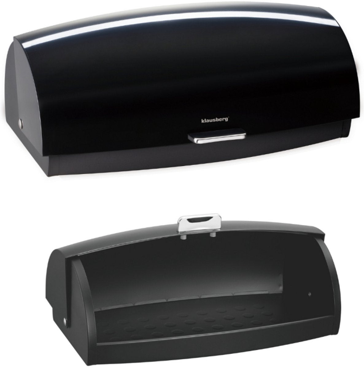 Deze KLAUSBERG brooddoos combineert functionaliteit met stijlvol design. Het zwarte, glanzende deksel en de metalen body creëren een moderne uitstraling die perfect past in hedendaagse keukens. Dankzij het slimme ontwerp blijft uw brood langer vers en behoudt het zijn versheid.