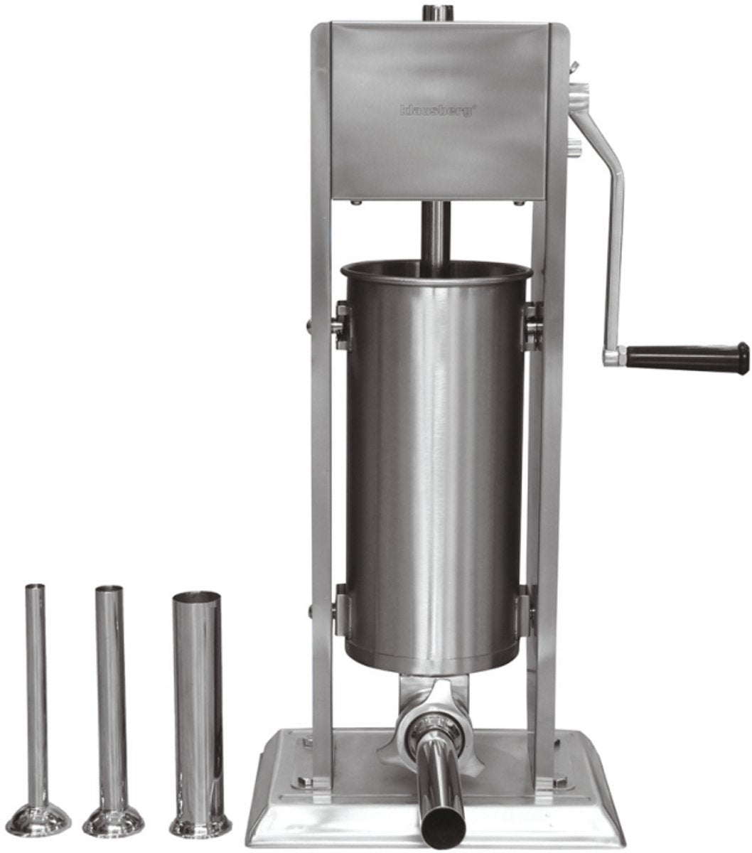 De Klausberg KB-7930 is een verticale worstenvuller van roestvrijstaal met een inhoud van 5 kg, ontworpen voor thuisgebruikers en semi-professionals. Met deze hoogwaardige vuller maakt u eenvoudig en gecontroleerd uw eigen worsten, gevogelte of andere vleesproducten. De RVS constructie garandeert hygiëne, duurzaamheid en eenvoudig onderhoud.