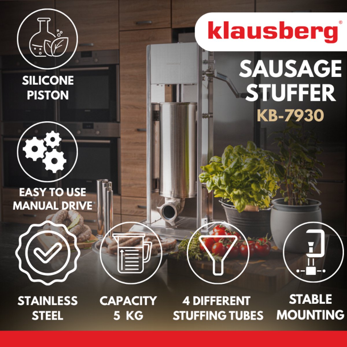 Deze vuller is perfect voor de serieuze hobbykok, jager, of kleine slagerij. Of u nu worst maakt voor eigen gebruik of voor verkoop – met de Klausberg KB-7930 heeft u een professioneel apparaat dat jarenlang meegaat.