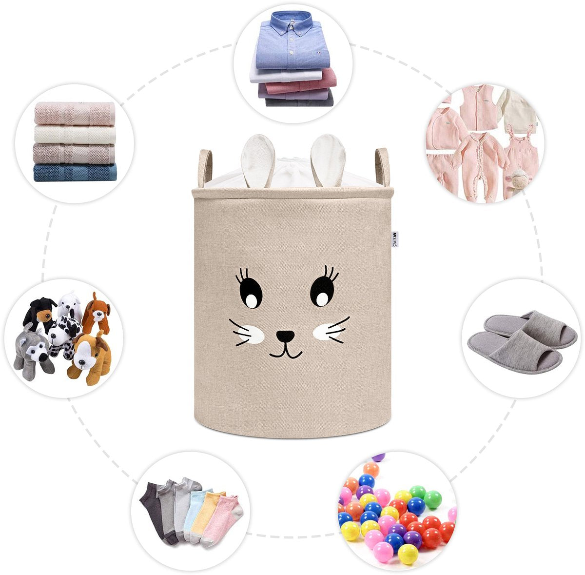 Deze veelzijdige konijnenhoofd opbergmand is ideaal voor het opbergen van speelgoed, knuffels en boeken in de kinderkamer. Dankzij de waterdichte eigenschappen is de mand ook perfect als wasmand voor kinderkleding. Het schattige konijn design stimuleert kinderen om zelf hun spullen op te ruimen en is een charmante aanvulling voor elke kinderkamer.
