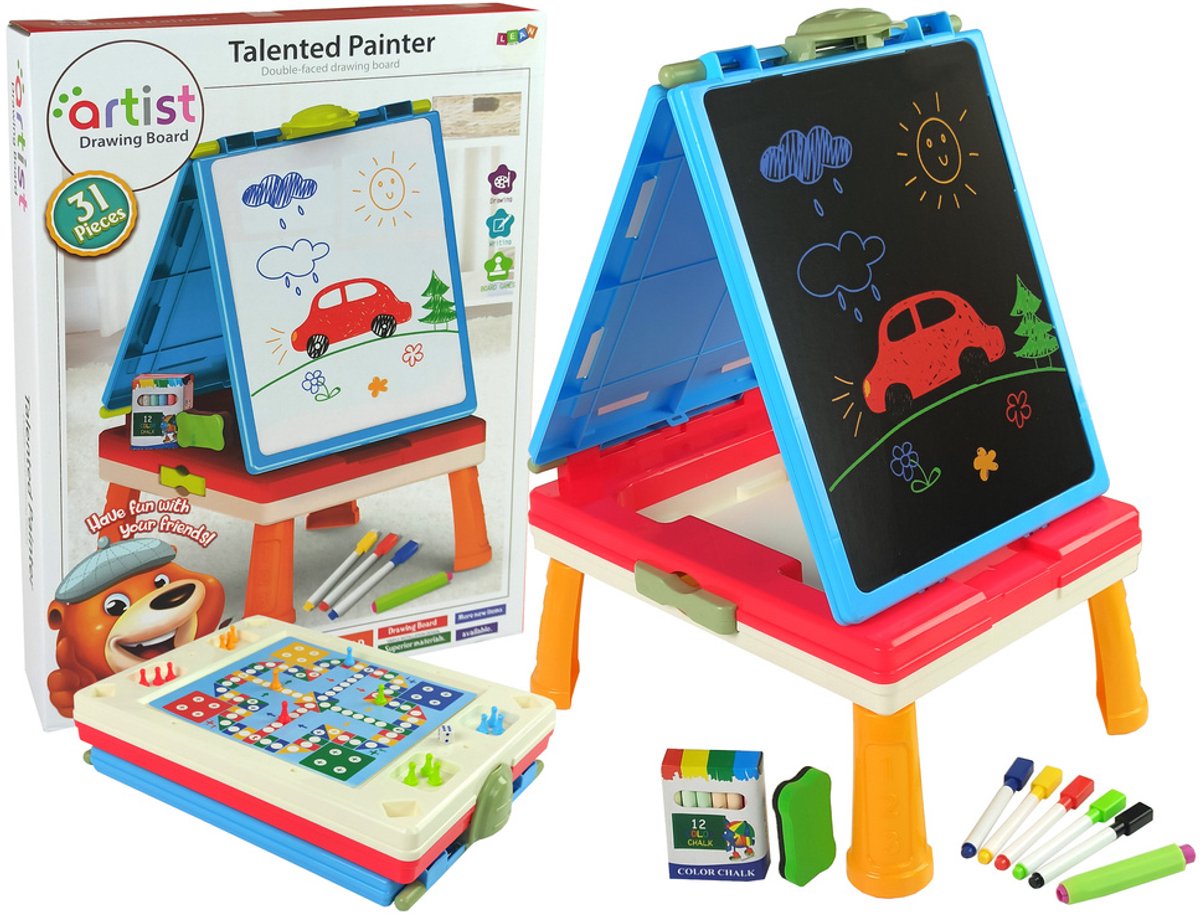 Ontdek het veelzijdige Leantoys 3-in-1 Magnetisch Krijtbord. Deze multifunctionele blauwe tafel combineert een schoolbord, een magnetisch whiteboard en een spelletjestafel... Lees meer