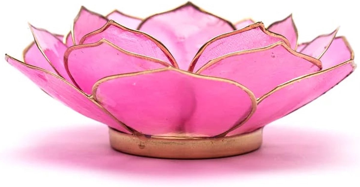 Lotus waxinelichthouder met lotusvormige bladeren, gemaakt van capiz schelpen.De lotus symboliseert transformatie van duisternis naar licht, van onwetendheid naar wijsheid.Capiz... Lees meer