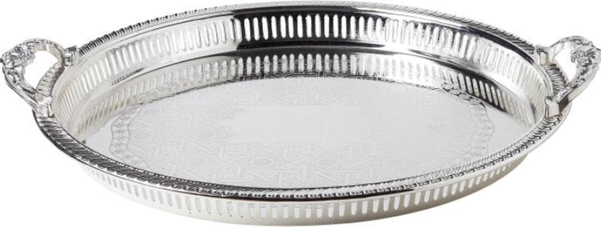 Rond hoge kwaliteit dienblad. Sierlijk design met mooie grepen en de zilveren kleur maakt dit helemaal af. Ideaal om iets... Lees meer