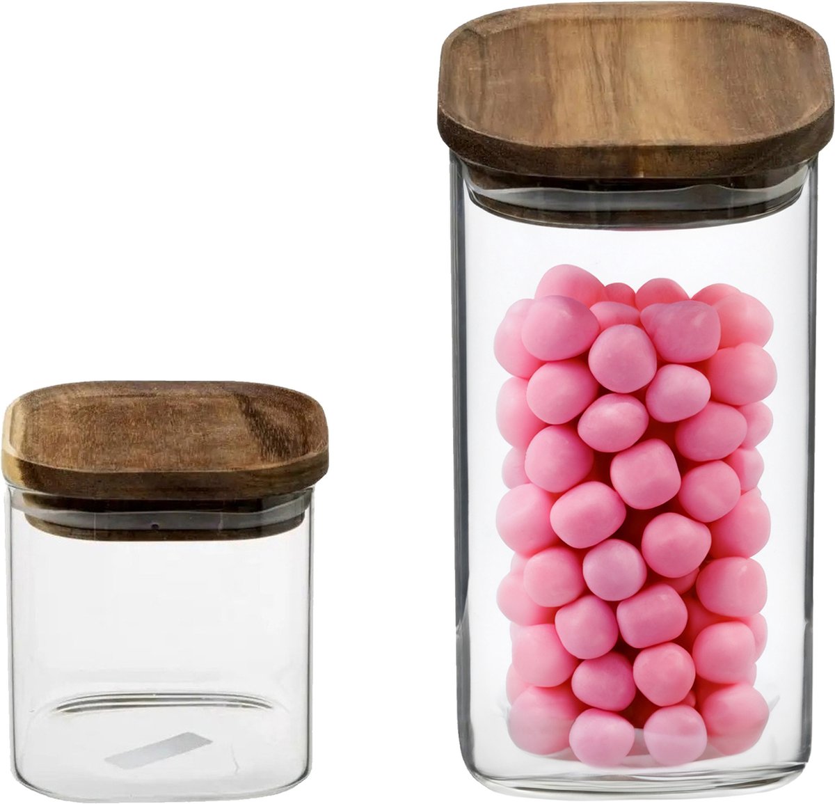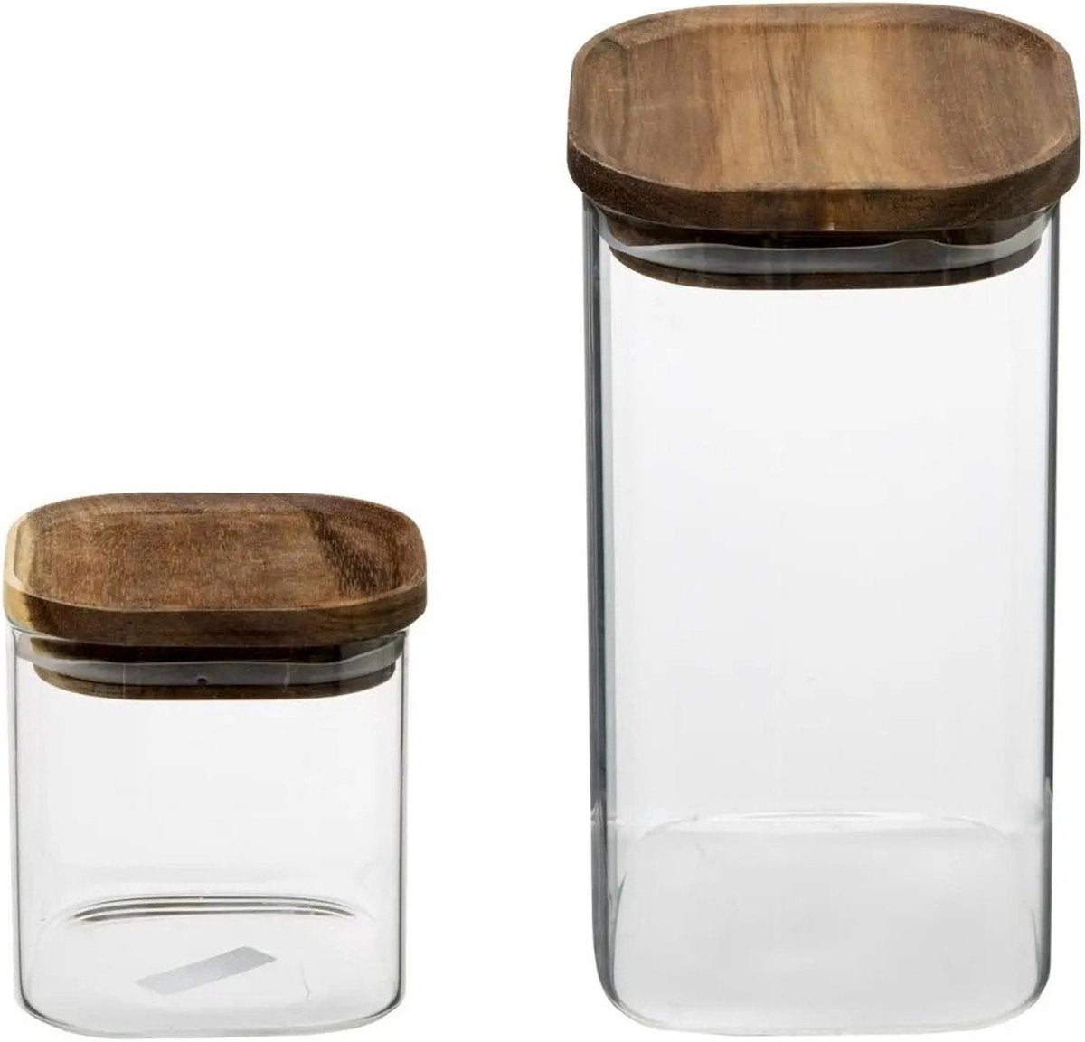 - 2x 5Five Voorraadpot voedsel - glas met acacia houten deksel - 600 ml - luchtdichte deksel