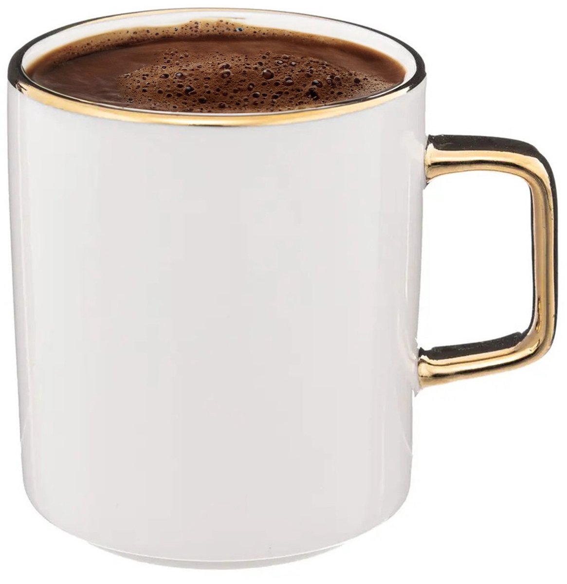 Koffiemokken/bekers type Athena, 4x stuks, in een prachtige kleuren mix van wit en goud. Materiaal: Keramiek met glans afwerking. Inhoud: 350 ml en afmetingen 8 x 9 cm. Breng je koffie ervaring naar een hoger niveau met deze luxe gestileerde koffiemokken. Deze bekers van hoogwaardig keramiek hebben een glans afwerking die een gezellige uitstraling geeft aan elke ochtend. Met een inhoud van 350 ml is deze mok perfect voor een stevige kop koffie of thee. De tijdloze vorm en de verfijnde afwerking maken de koffiemok een stijlvolle toevoeging aan je keuken of kantoor. Geniet van je favoriete drankje in dit stuk van verfijnde eenvoud.