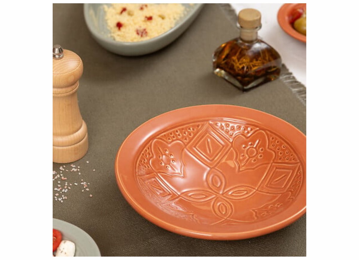 Breng een warme en landelijke sfeer op tafel met deze set van twee diepe terracotta borden. Vervaardigd van stevig aardewerk, zijn deze veelzijdige borden perfect voor al uw favoriete gerechten die een kommetje verdienen. De sierlijke bloemopdruk voegt een vrolijk en stijlvol accent toe.