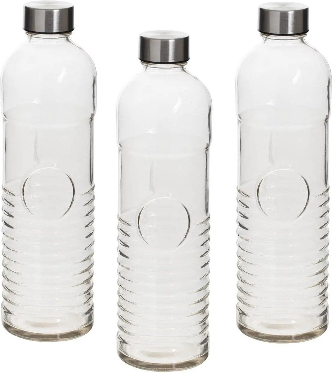 Set van 3x stuks waterflessen/drinkflessen 1 liter van gehard ribbel glas - Glazen drink flessen