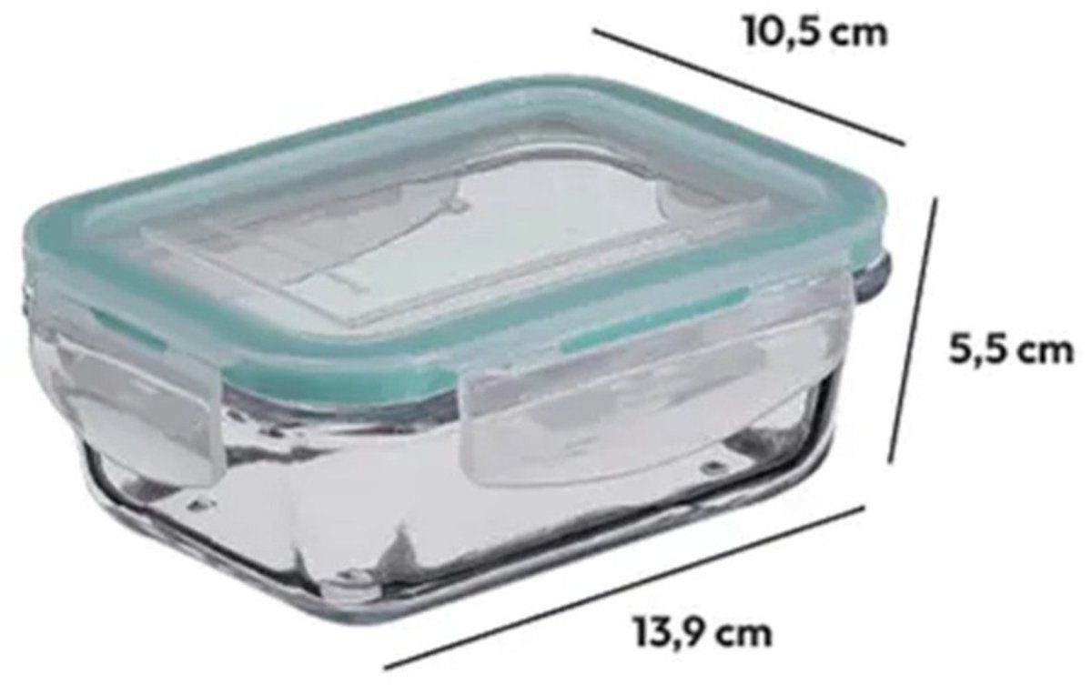 Dit veelzijdige vershoudbakje van glas is de ideale oplossing om voedsel langer vers te houden. Het bakje is gemaakt van glas en dankzij het transparante ontwerp kun je altijd snel zien wat erin zit. De afmetingen van 14 x 10 x 5 cm bieden voldoende ruimte voor lunches, snacks of restjes. De luchtdichte clips zorgen ervoor dat de inhoud veilig en vers blijft, zonder lekken of morsen. Perfect voor onderweg, naar het werk, school of voor het bewaren van voedsel in de koelkast of vriezer. Dit vershoudbakje/lunchbox is een must-have voor iedereen die graag georganiseerd is en voedsel langer vers wil houden. Met zijn luchtdichte sluiting, compacte formaat en duurzame glazen constructie, biedt dit bakje een stijlvolle en praktische oplossing voor al je bewaar- en maaltijdvoorbereidingsbehoeften. Afmeting: ca. 14 x 10 x 5 cm. Inhoud: ca. 730 ml. Met kunststof deksel.