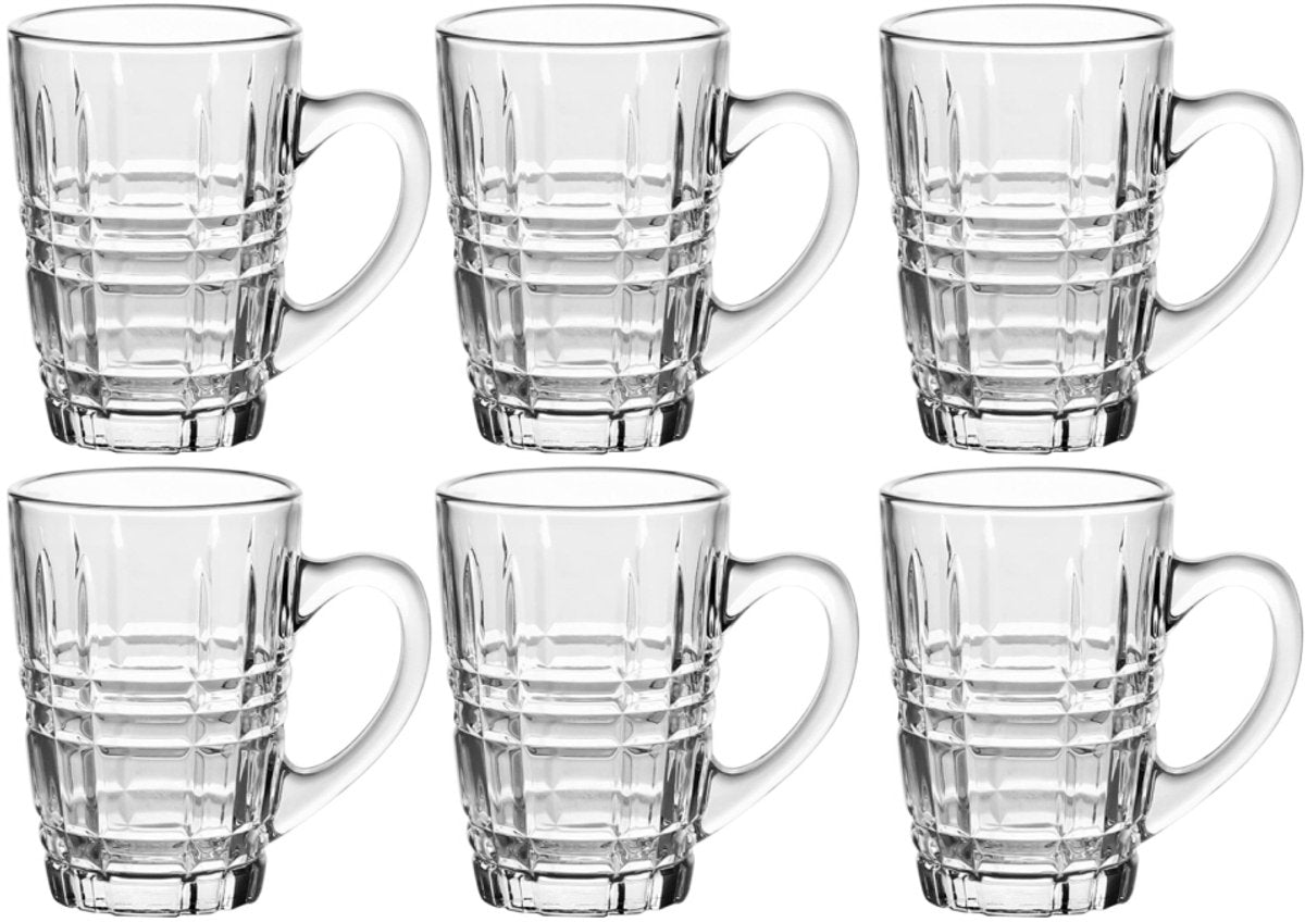 Complete set: Ontvang 6 identieke, doorzichtige glazen mokken.