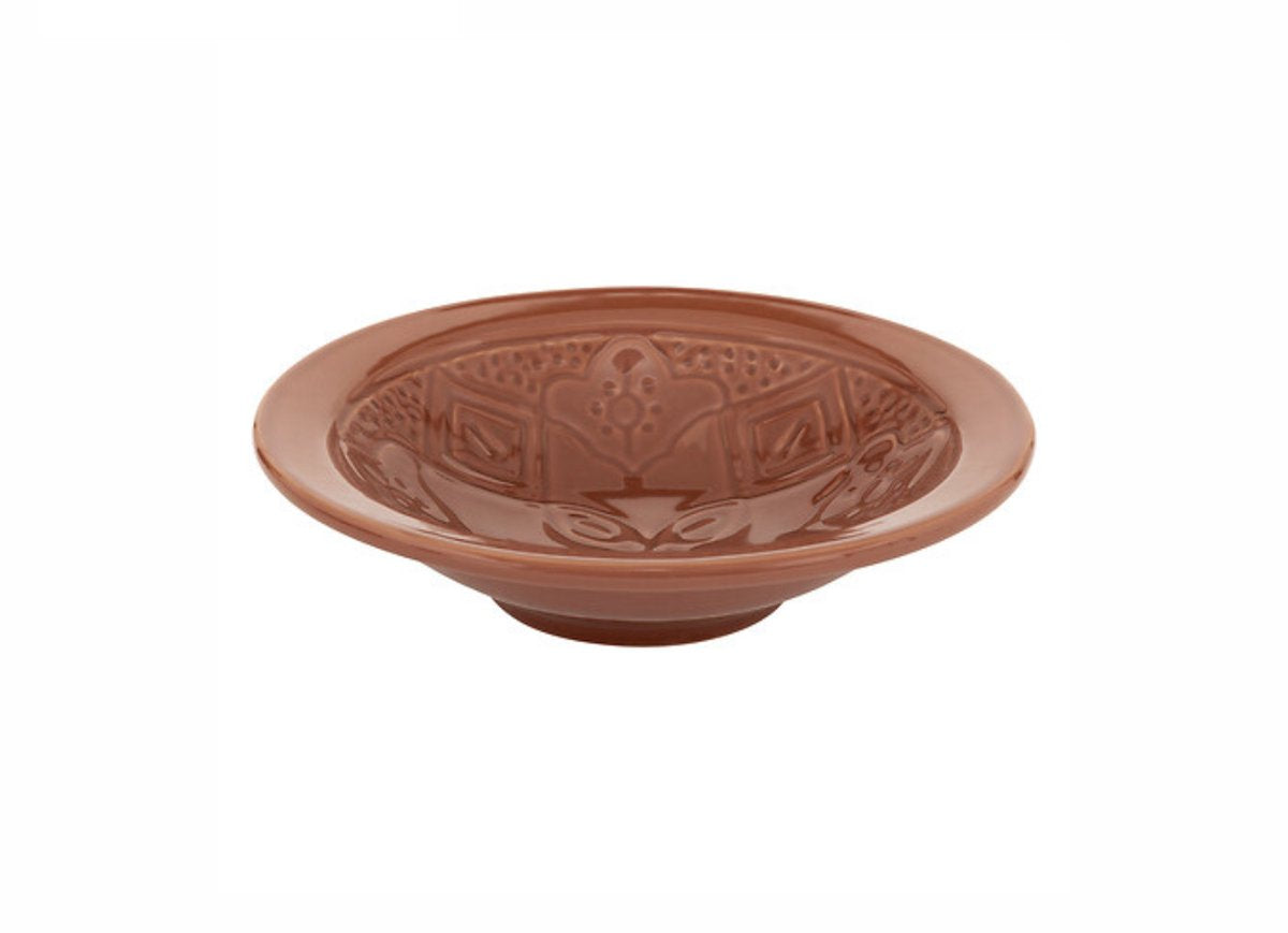 Serveer uw favoriete gerechten in stijl met het Sienna diepbord. Dit veelzijdige terracotta bord van hoogwaardige faience keramiek is perfect voor stevige maaltijden waar een bord met opstaande rand voor nodig is. De prachtige bloemopdruk geeft het bord een vrolijke en landelijke uitstraling.