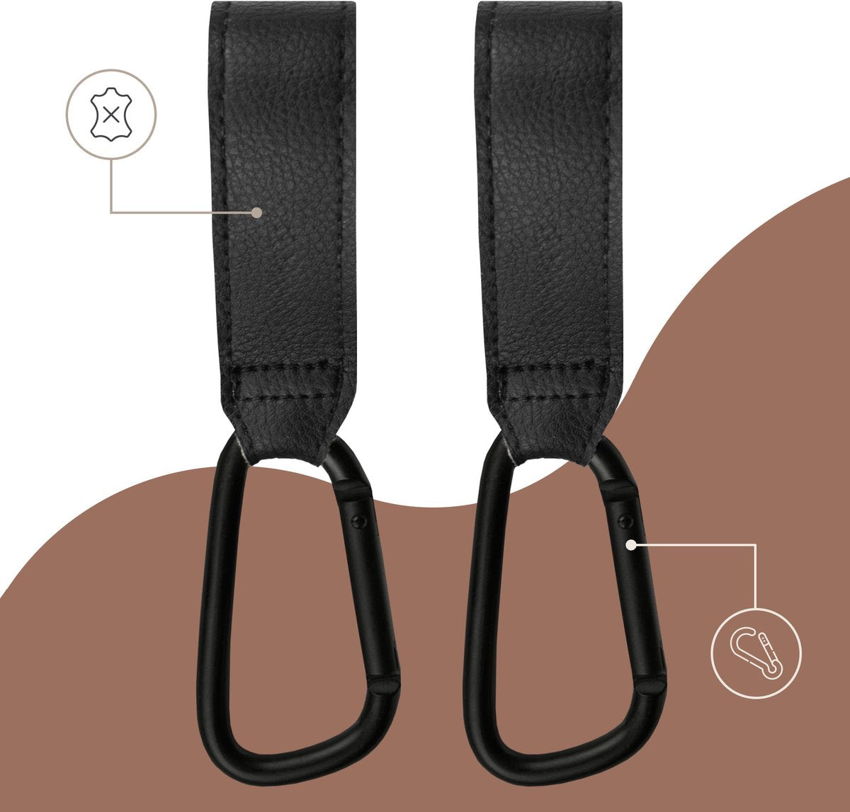 De Sipo SCA-12 haakjes bieden een elegante en functionele oplossing voor het ophangen van spullen aan kinderwagens, rolstoelen en fietsen. Vervaardigd van duurzaam eco-leer en voorzien van stevige aluminium karabijnhaken, zijn deze haakjes perfect voor dagelijks gebruik. Met een draagvermogen van 5 kg per haakje.