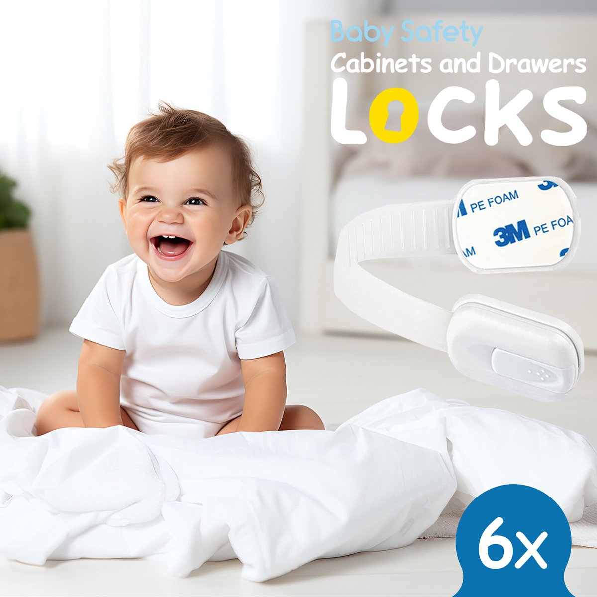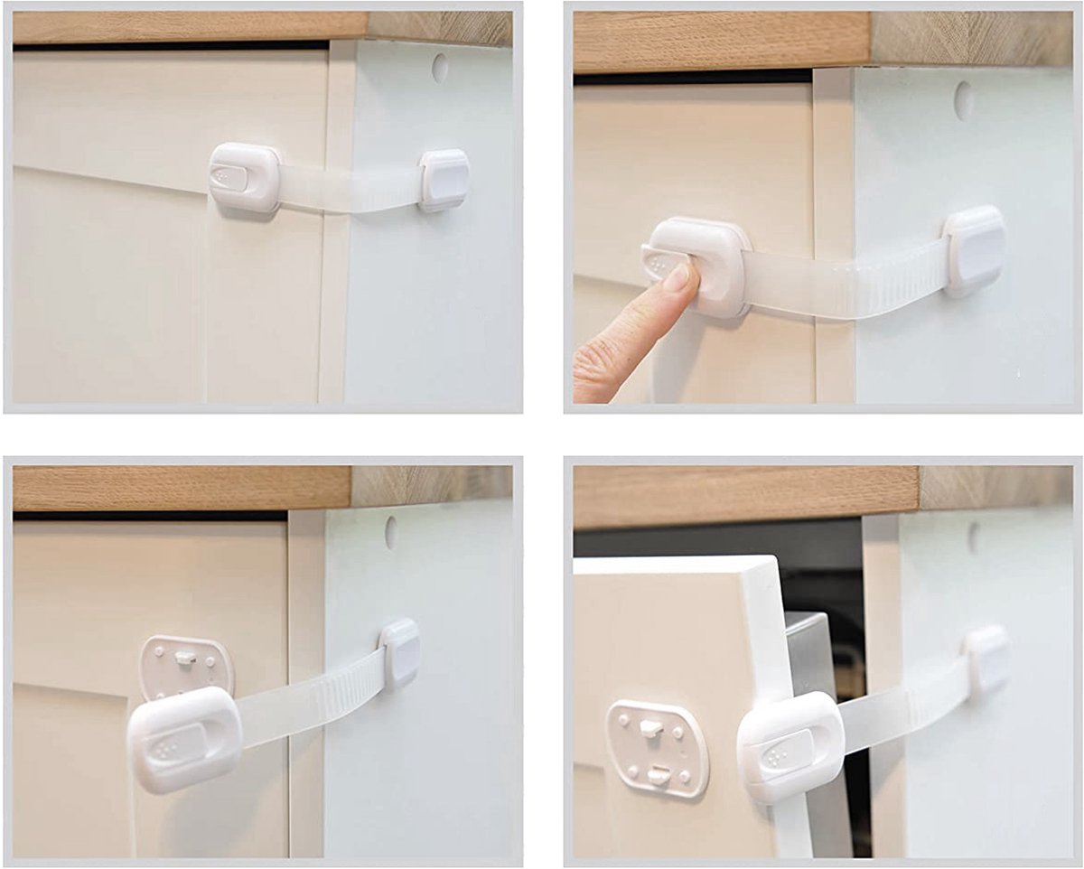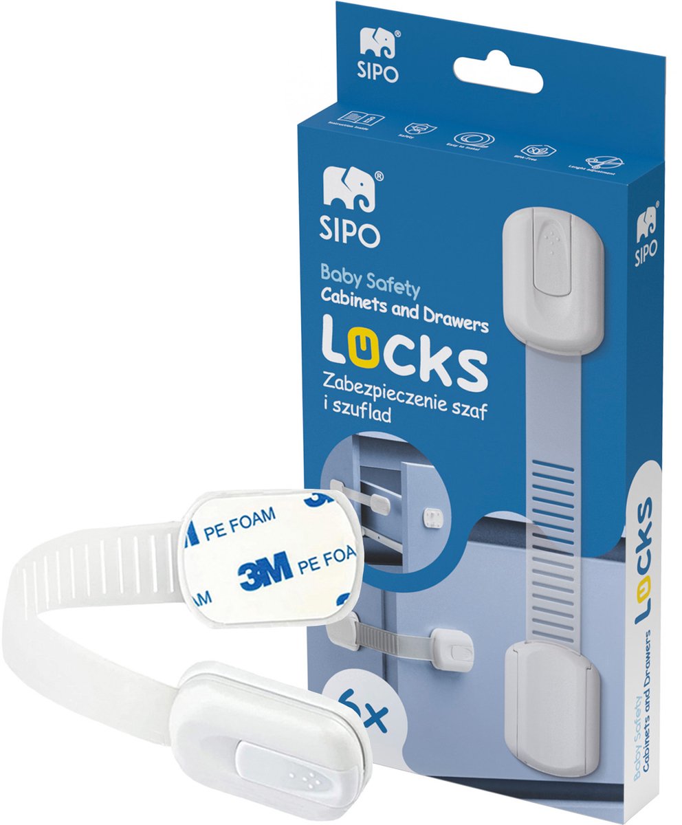 Deze complete set met 6 verstelbare veiligheidssloten biedt een praktische oplossing om kasten, laden en meubels te beveiligen tegen nieuwsgierige kinderen. Met de eenvoudige zelfklevende bevestiging installeert u deze sloten binnen enkele minuten, zonder gereedschap of boren nodig.