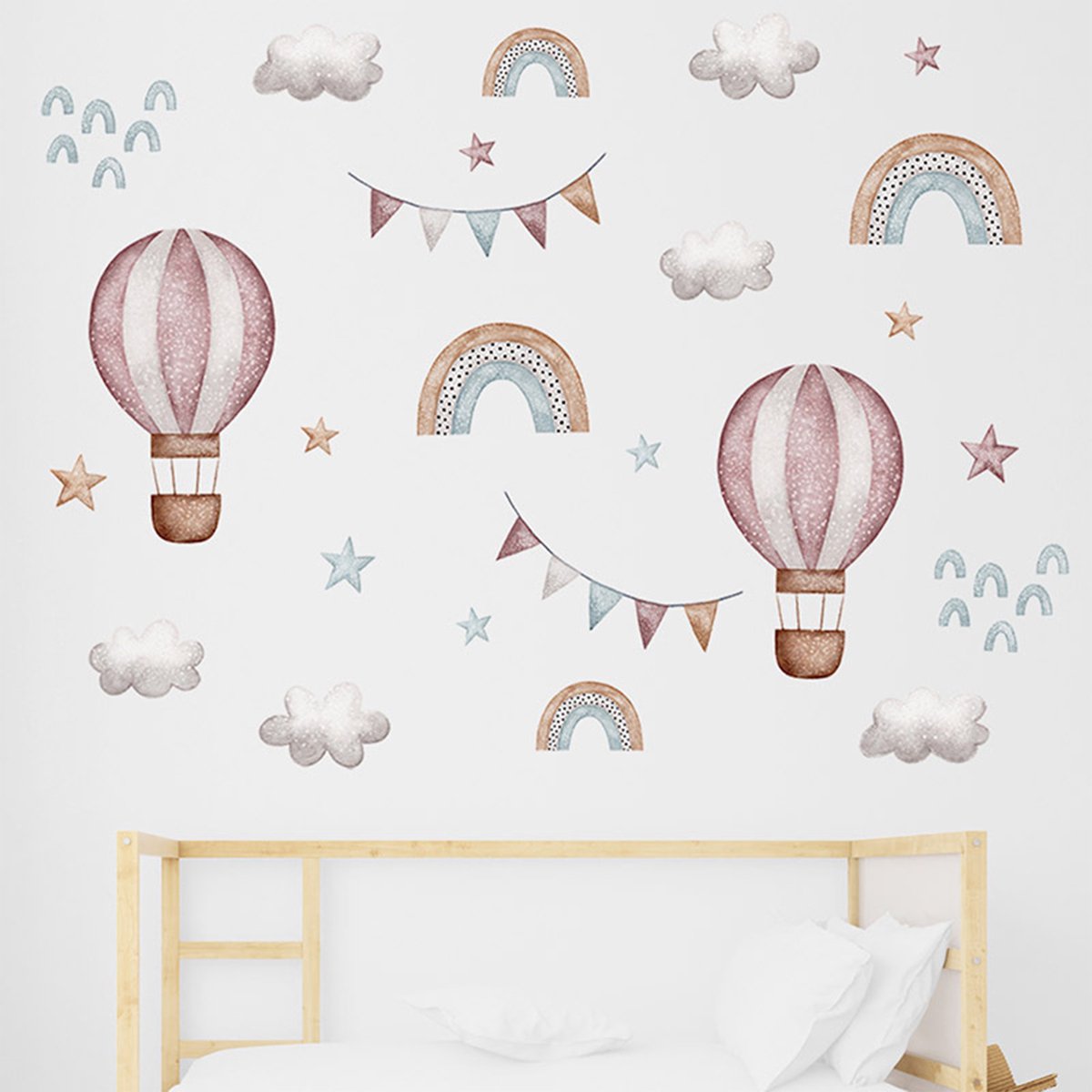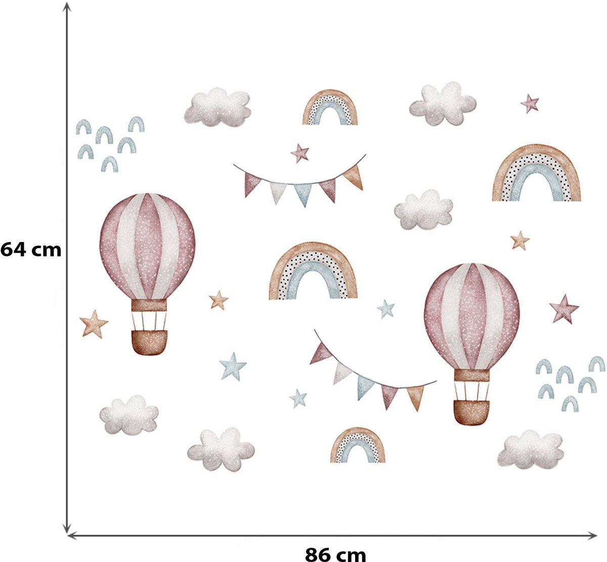 Met de Sipo wandsticker "Ballonnen en Regenboog" brengt u moeiteloos vrolijkheid en kleur in de kinderkamer. Deze zelfklevende muurdecoratie transformeert elke ruimte in een speelse, fantasierijke omgeving. Perfect voor het opfleuren van kinderkamers, speelhoeken, kinderdagverblijven of andere gladde oppervlakken.