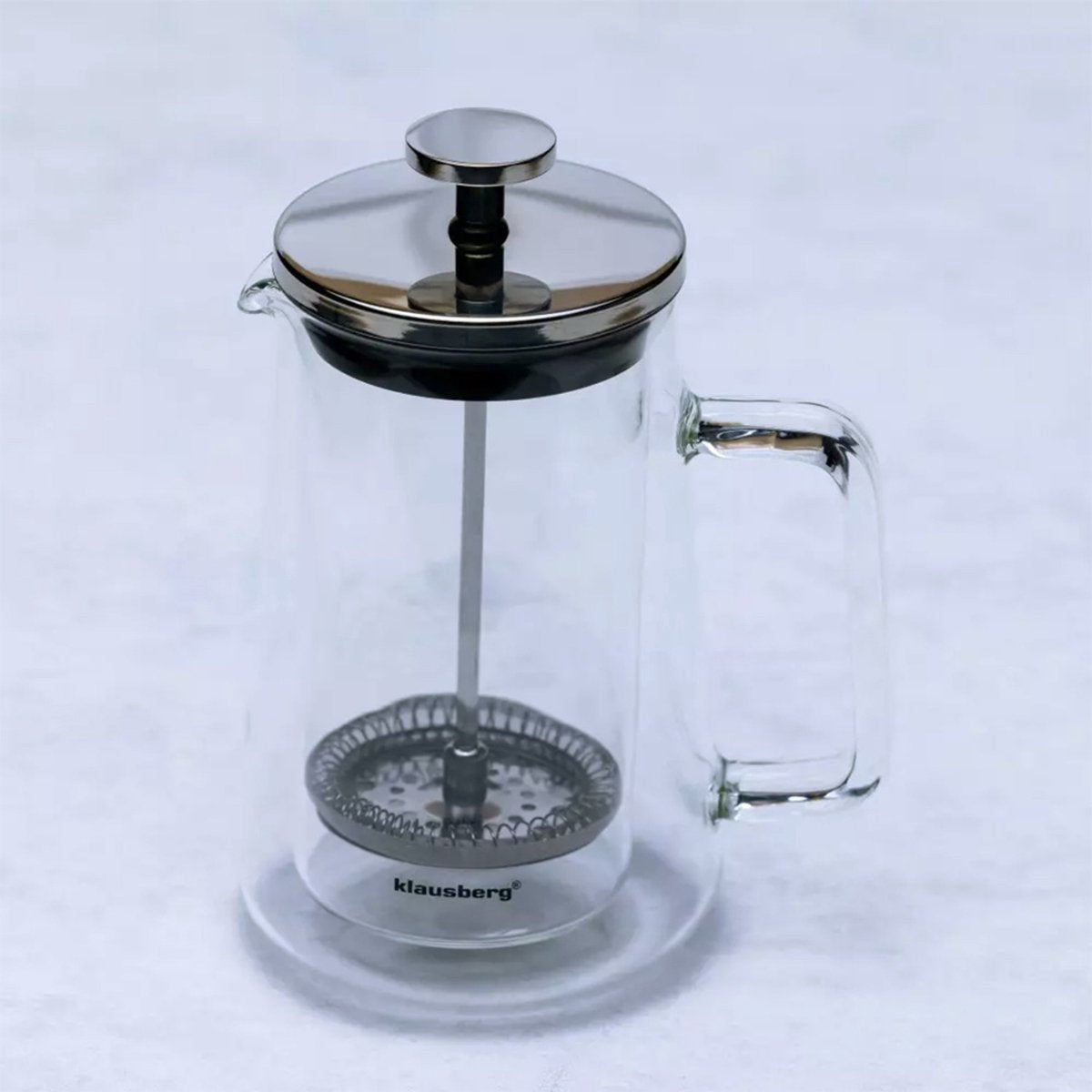 Een French press is een uiterst praktisch zuigerkoffiezetapparaat waarmee u koffie, thee of kruiden kunt zetten. Je kunt een cafetière ook gebruiken om melk op te schuimen. Je giet simpelweg de eerder verwarmde melk in de kan en beweegt de zuiger een aantal keer. Dankzij de dubbelwandige constructie blijft de temperatuur van het eindproduct langer behouden, net als bij thermosflessen. Het voordeel van borosilicaatglas is de verhoogde bestendigheid tegen hoge en lage temperaturen (van -10°C tot +210°C), krassen, scheuren en chemicaliën. Beter bestand tegen vervorming door hoge temperaturen dan gewoon glas. - Dubbelwandig koffiezetapparaat met een moderne vorm - Hoogwaardig filtermateriaal roestvrij staal en borosilicaatglas - Uniek ontwerp met een constructie die veiligheid tijdens gebruik garandeert - Produceert een uitstekend aroma van gebrouwen dranken, bijvoorbeeld koffie, thee, kruiden - Eenvoudige en snelle manier om een warme drank te bereiden door het substraat te scheiden - Vaatwasmachinebestendig, maar er bestaat een risico dat er water tussen de wanden van de pan komt via het technologische microgat. - Inhoud - 350 ml