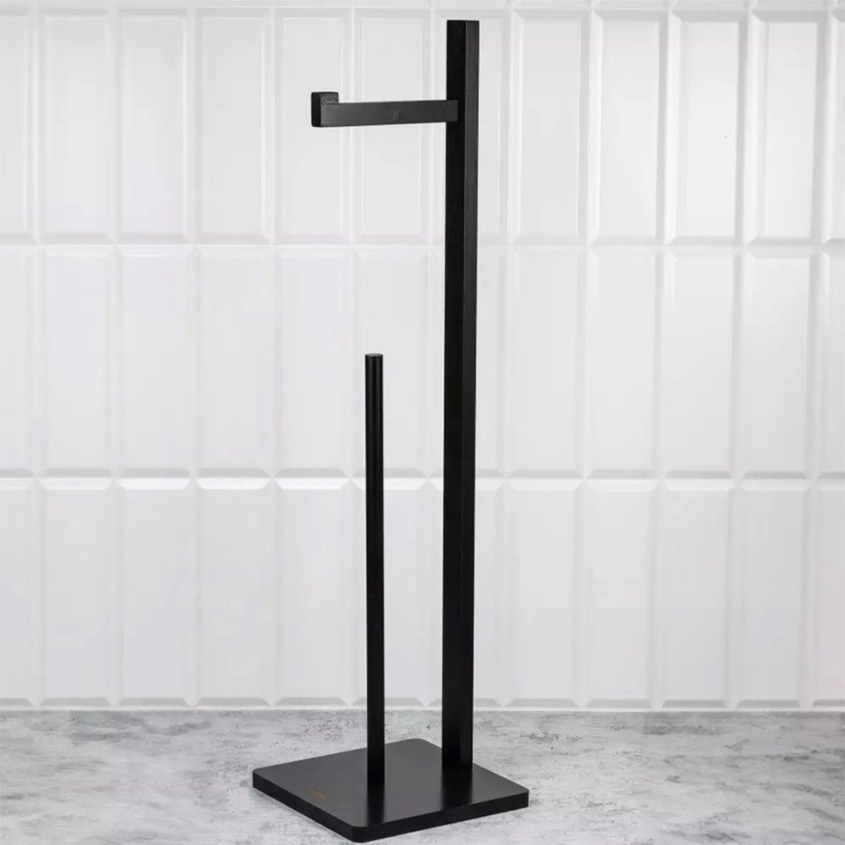 Toiletpapierhouderstandaard Gemaakt van 100% natuurlijk, ecologisch bamboe, zwart geverfd. Hoogwaardige, solide constructieRuimtebesparend - kan 5 rollen toiletpapier bevattenElegant design: vrijstaande... Lees meer