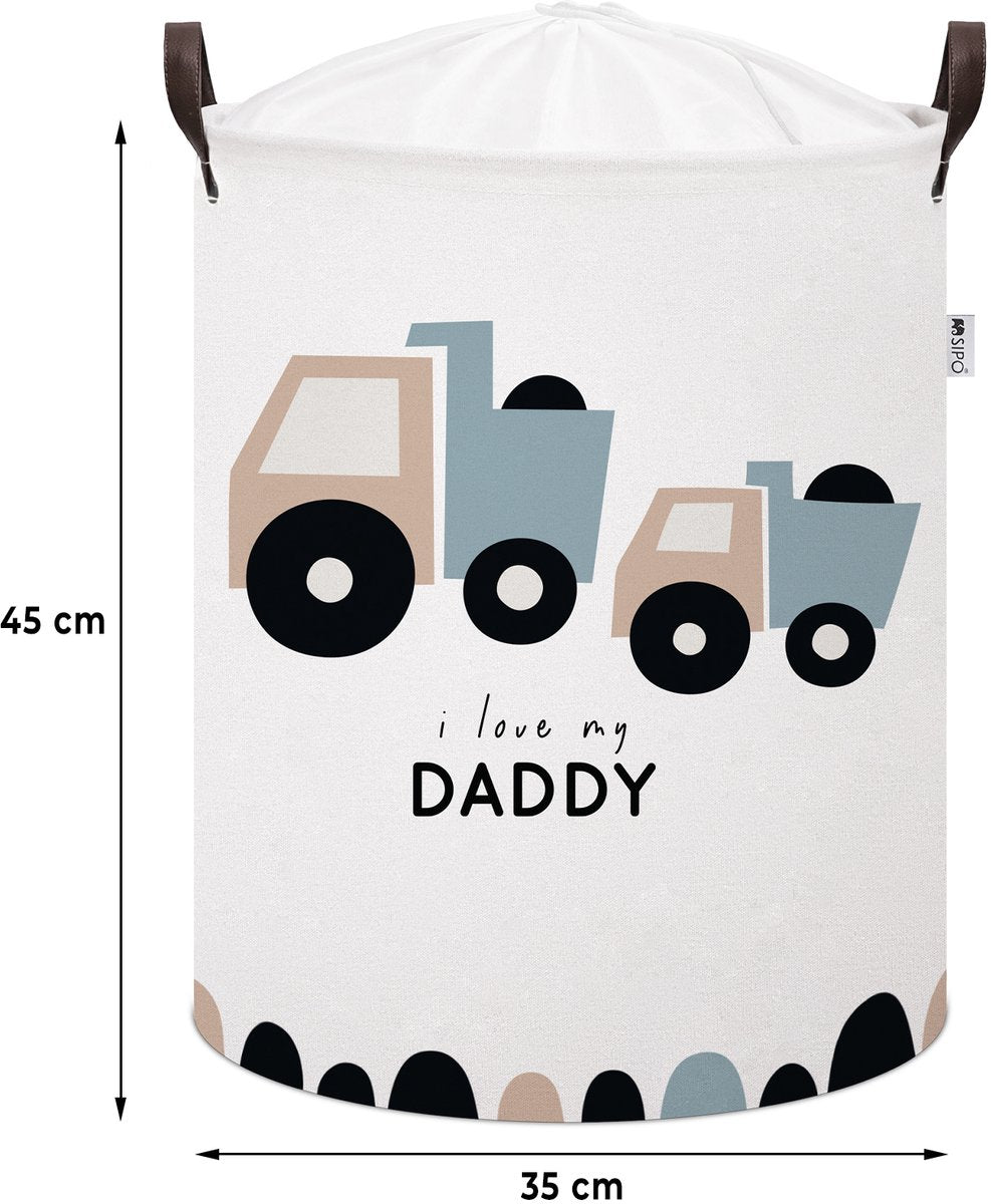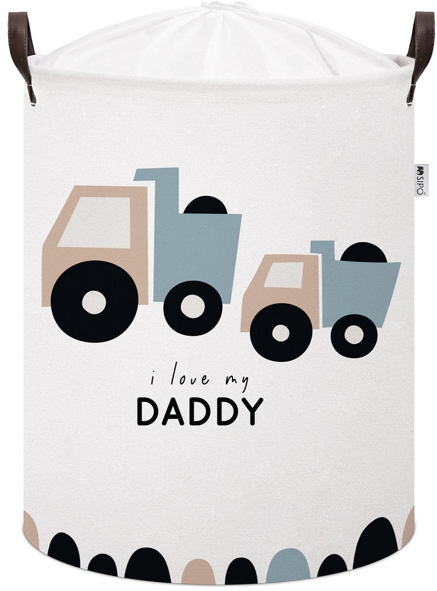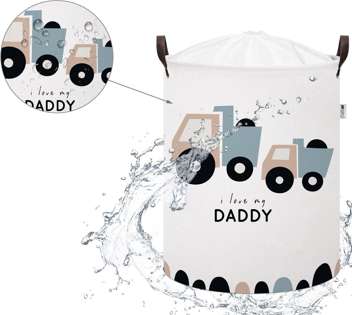 Deze truck speelgoedopbergmand combineert stoere trucks met een liefdevolle boodschap voor papa. Met de opdruk van twee trucks en de tekst "I Love My Daddy" is deze mand perfect voor kleine truckliefhebbers. De multifunctionele opbergmand helpt de kinderkamer netjes te houden en is een speciaal cadeau-idee voor vaders.