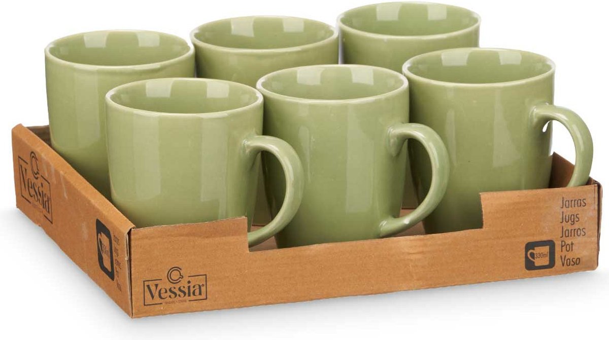 Vessia Design koffie mokken/bekers met oor - 6x stuks - mintgroen - keramiek - 330 ml