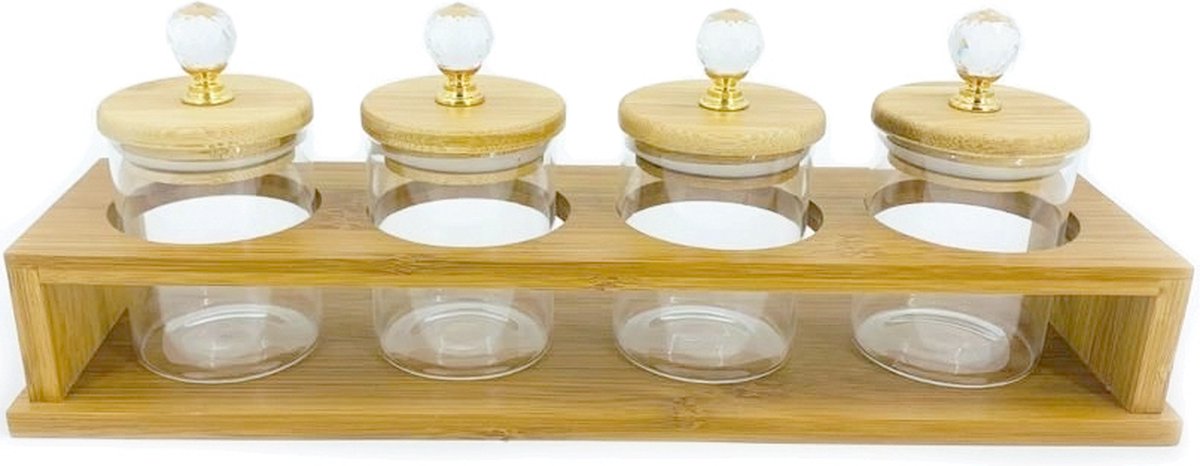 Voorraadpotten - Glazen Potjes met Deksel - Bewaarpotten met bamboe houder