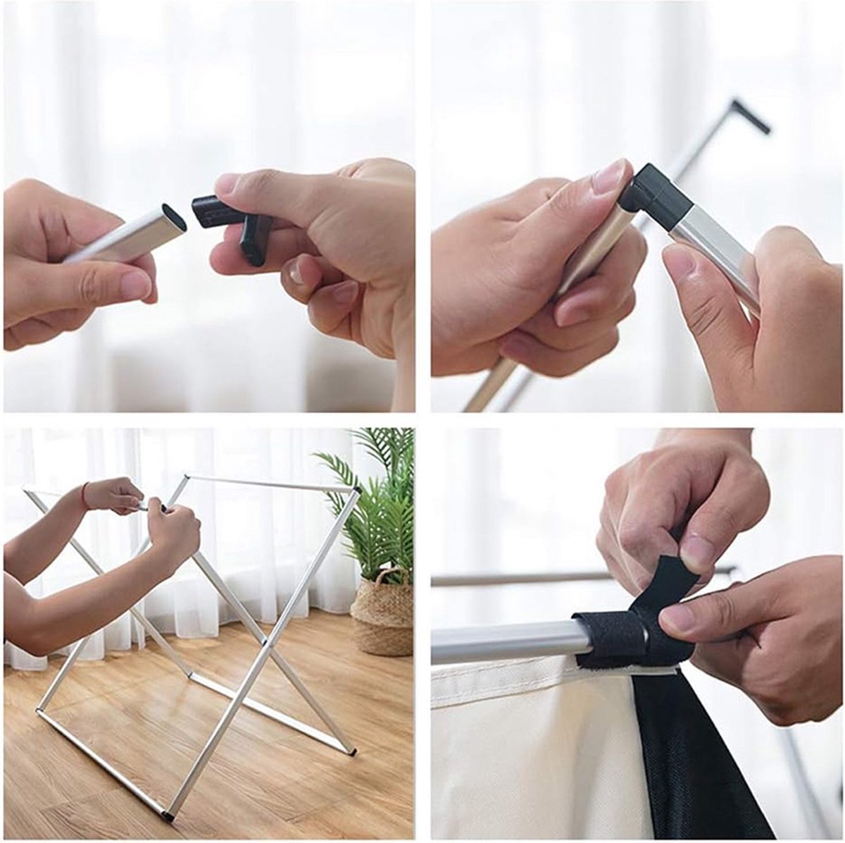 De wasmand is vervaardigd uit hoogwaardig, waterdicht materiaal en is voorzien van een stevig aluminium frame. Wanneer je de mand niet nodig hebt, kun je deze eenvoudig opvouwen en compact opbergen in je kledingkast.