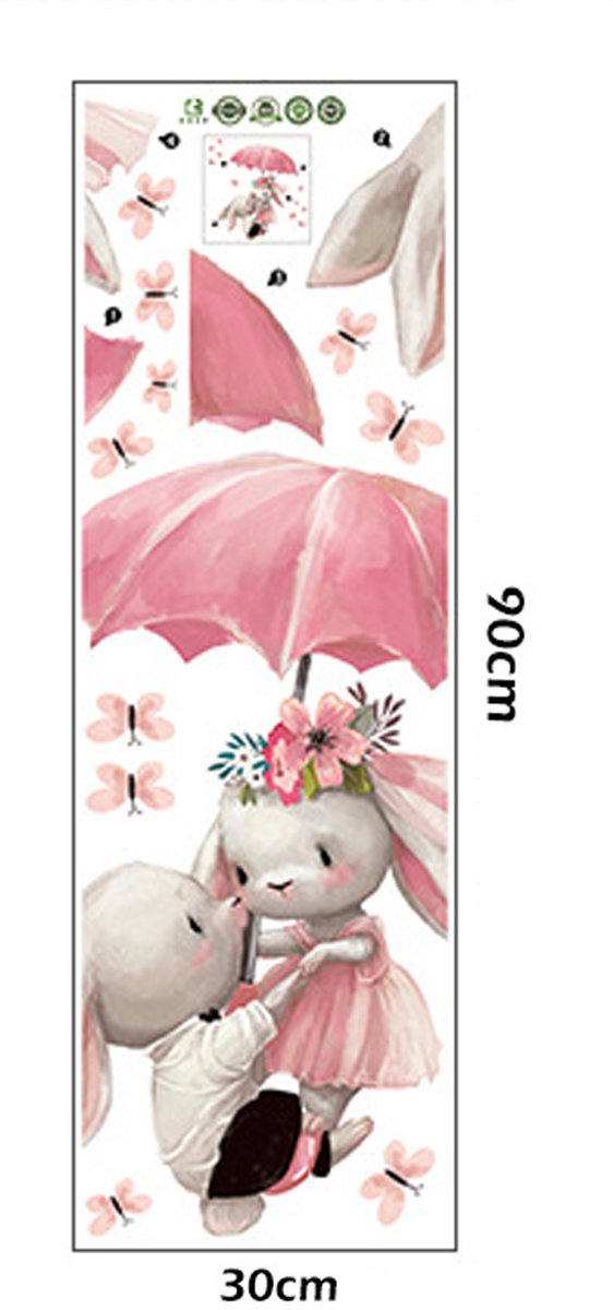 Met deze konijntjes met paraplu wandsticker creëert u moeiteloos een betoverende en dromerige omgeving waar kinderen zich veilig en geborgen voelen. Perfect voor het creëren van een kalmerende slaapomgeving of een speelse hoek waar zachtheid en fantasie centraal staan.