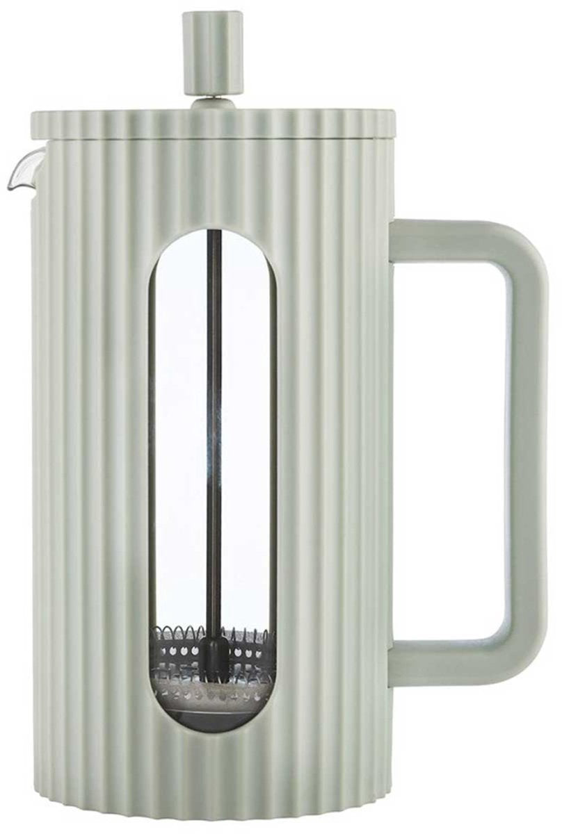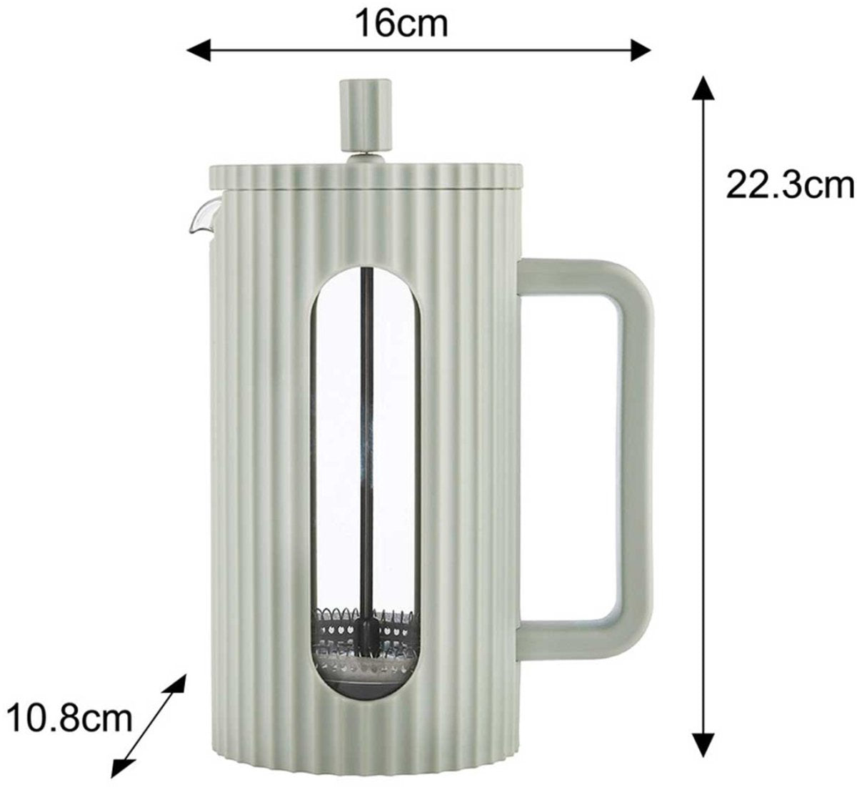 " Een French press is een uiterst praktisch pistonkoffiezetapparaat waarmee u koffie, thee of kruiden kunt zetten. Je kunt een cafetière ook gebruiken om melk op te schuimen. Je giet simpelweg de eerder verwarmde melk in de kan en beweegt de zuiger een aantal keer. De buitenkant is gemaakt van hoogwaardig kunststof met een gegolfd oppervlak, wat de temperatuur van de gezette drank extra isoleert. Een uniek ontwerp dat veiligheid tijdens gebruik garandeert. De ergonomische handgreep en het doordachte ontwerp zorgen voor comfort en veiligheid tijdens gebruik. Kenmerken: Hoogwaardig filtermateriaal van roestvrij staal en borosilicaatglas Uniek ontwerp zorgt voor veiligheid tijdens gebruik Produceert een uitstekend aroma voor gezette dranken, waaronder: koffie, thee, kruiden Een eenvoudige en snelle manier om een warme drank te bereiden door de infusie te scheiden. Vaatwasserbestendig Capaciteit - 1000 ml Afmetingen - Ø10,8 cm x 22,3 cm Kleur: Pistachegroen